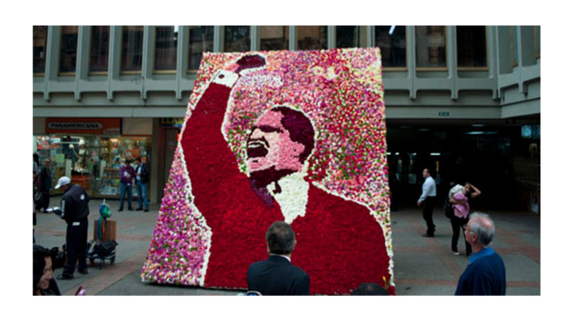Postes de iluminación pintados como murales y fotografías antiguas fueron parte de la escena, al igual que una silleta gigante de quien el colectivo gaitanista denomina "la primera víctima": Jorge Eliécer Gaitán.