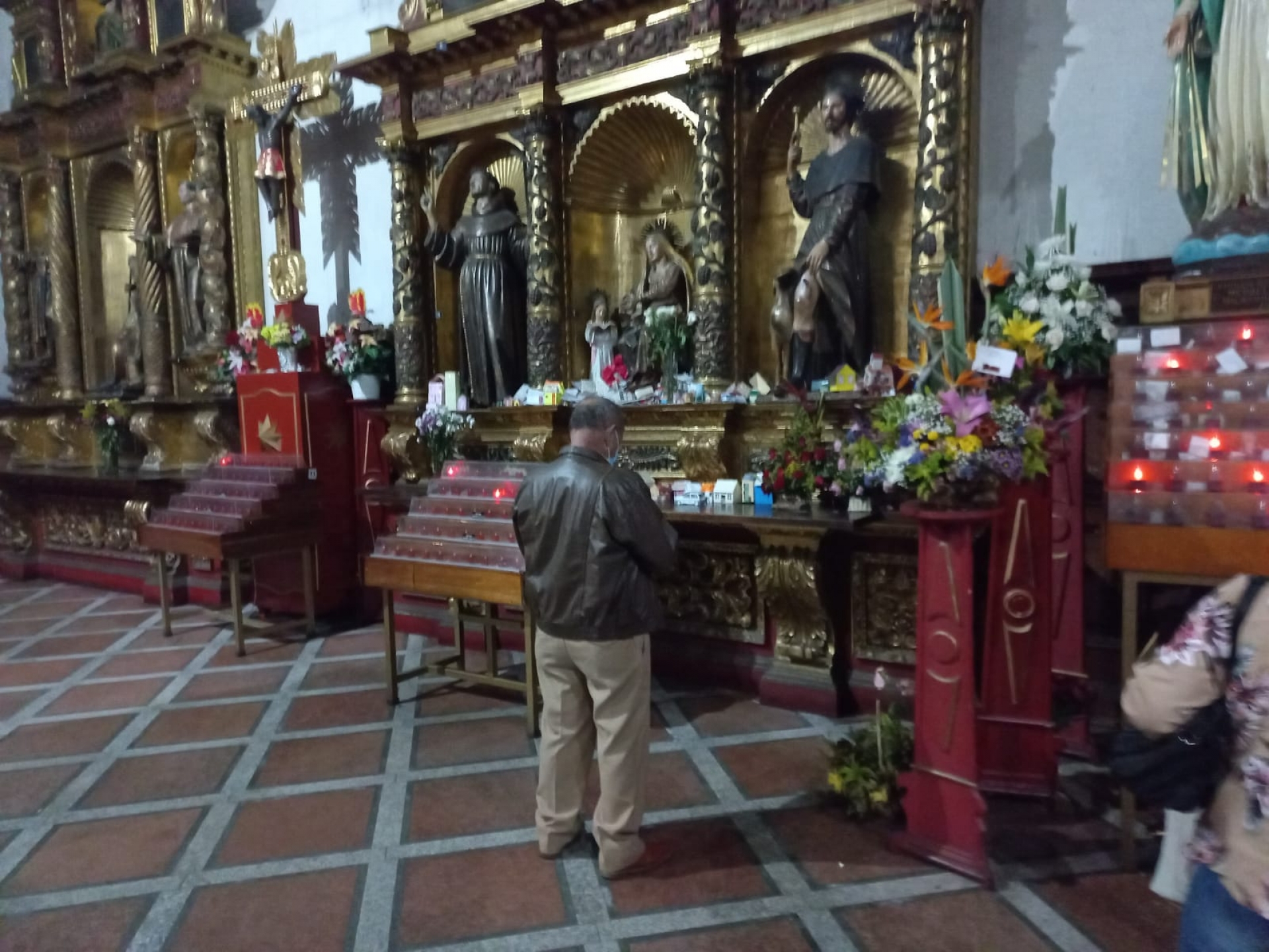 Con las manos al frente, de pie y con los ojos medio abiertos y dirigidos hacia el suelo se puede ver todos los días, a eso de las ocho de la mañana, a Carlos Julio Jiménez en la iglesia de San Francisco, en el centro de Bogotá. Este es el templo más antiguo en pie en la ciudad, y aquí, la imagen de Santa Ana se encuentra en el segundo altar, acompañada de una imagen de San Roque y otra de San Francisco Solano, entrando por una pequeña puerta de madera sobre la carrera séptima a la derecha.
