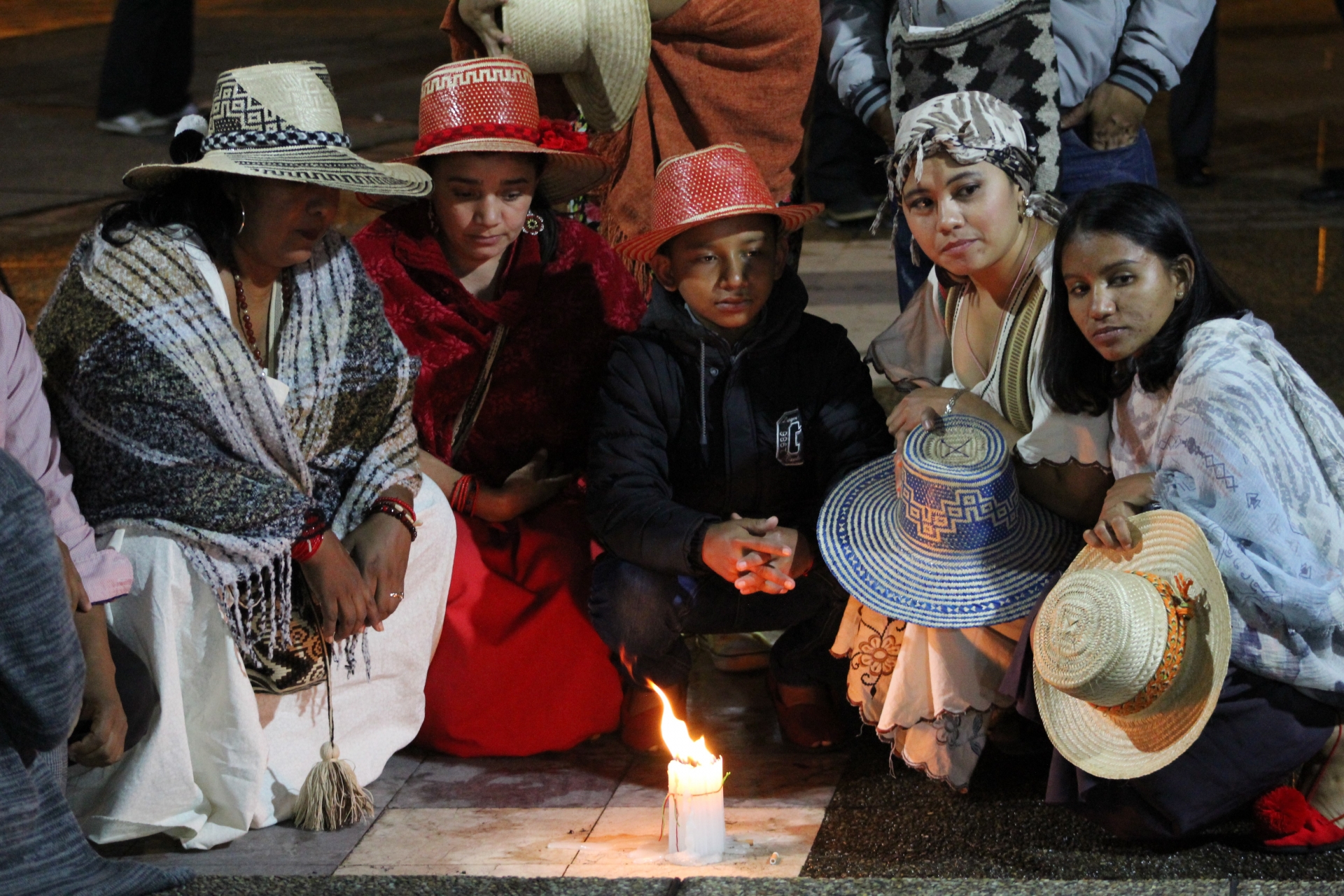La ceremonia dio comienzo a las 6:00p.m cuando personas de la comunidad Wayúu y algunos miembros de la delegación de mujeres de la Guajira llegaron al bunker de la Fiscalía. Las personas interesadas fueron llegando con antorchas y pancartas para expresar su apoyo a las comunidades indígenas y a recordar algunas víctimas del gobierno colombiano. A eso de las 7:30p.m llego el grupo que salió del Parque Nacional; varias organizaciones, estudiantes, profesores y demás personas que ponían volumen al movimiento. Entre cantos y diálogos se exigía una fiscalía “sanada de corrupción”, tanto la marcha como la velatón utilizaron el numeral #MingaParaSanar, con el fin de sanar las acciones, las palabras, los procesos, los errores, las heridas y el recuerdo de las víctimas con el objetivo de que no se repitan estas injusticias y violaciones a los derechos que dejan cicatriz en la historia de Colombia. La ceremonia concluyo con el mayor gesto de afecto humano, el abrazo, para olvidar las diferencias que nos separan a campesinos, indígenas, oficinistas, estudiantes, etc., y recordarnos que lo que nos une es el ideal de una Colombia en paz.