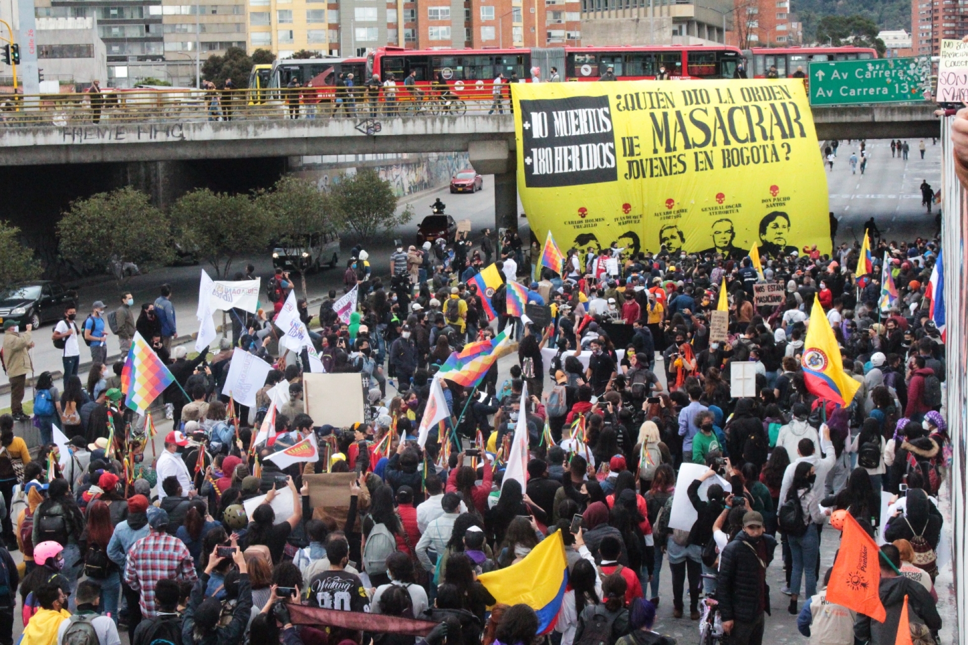 Vale la pena resaltar que Miguel Ceballos, Alto Comisionado para la Paz del gobierno Duque, señaló en entrevista para El Tiempo: "Detrás de la destrucción de los CAI en diferentes ciudades del país, existe un claro y premeditado plan de grupos como el Eln y la disidencias de las Farc". En relativa calma y de manera pacífica transcurrió la jornada de movilizaciones y protestas en distintas ciudades del país. En Bogotá, ciudad que registró la mayor concentración de ciudadanos en marchas y plantones, se realizó una marcha pacífica con un gran número de expresiones artísticas. Una de ellas se llevó a cabo en el Parque Nacional.