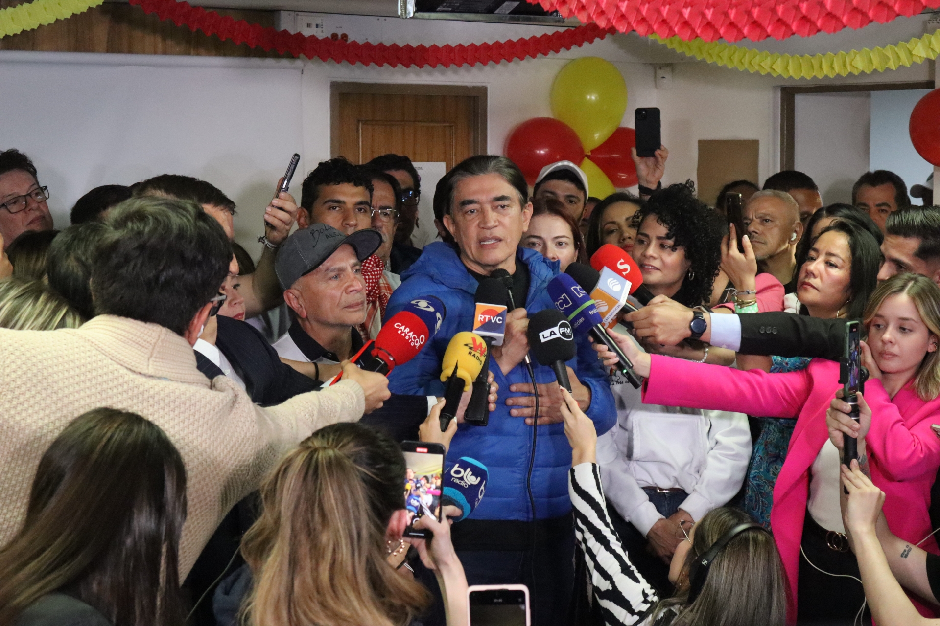 Gustavo Bolivar llega a su sede de campaña luego de que se anunciara la victoria de Galán