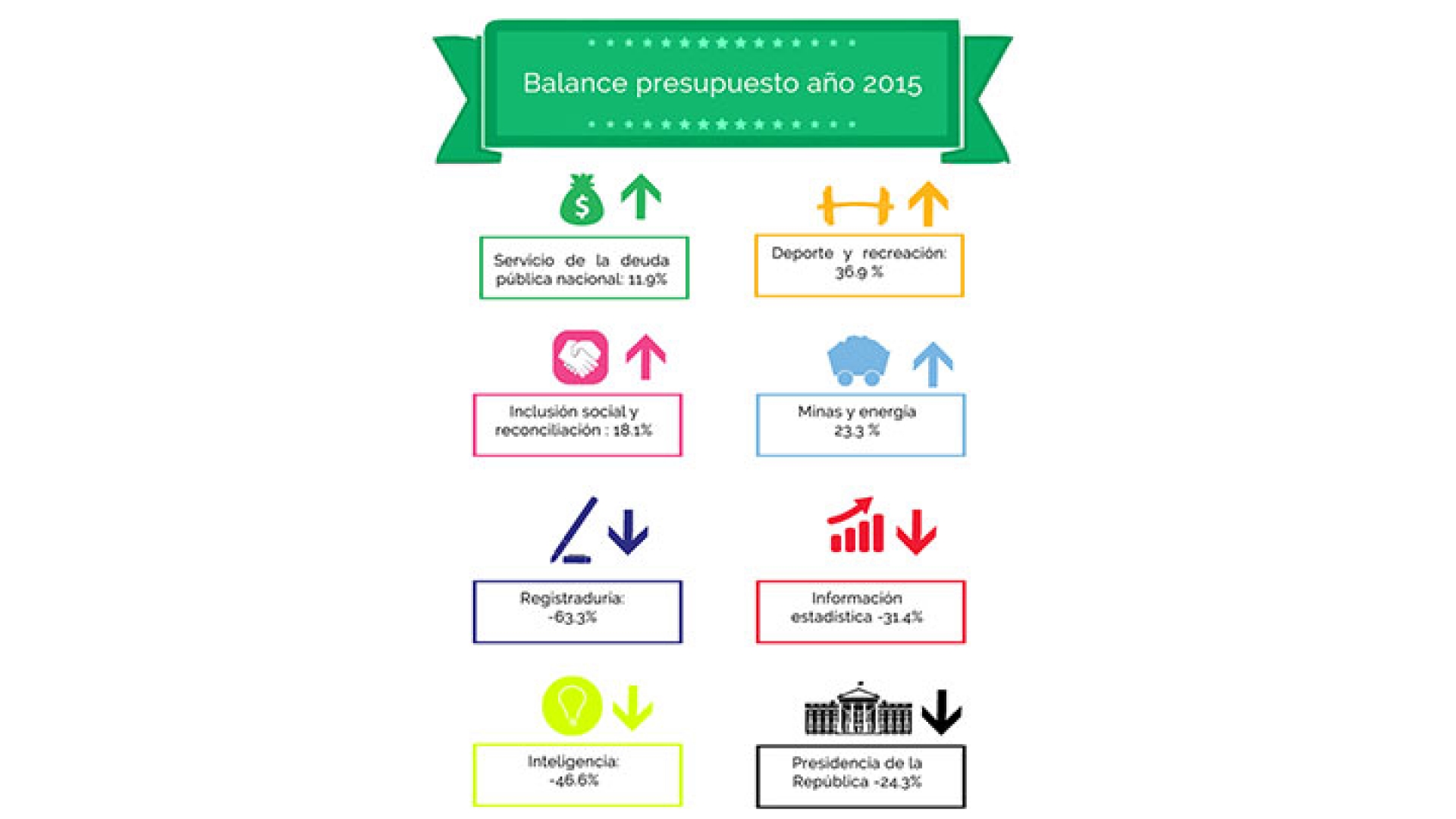 El presidente Juan Manuel Santos anunció, en el Consejo de Ministros, el recorte del 10% en gastos de funcionamiento del Gobierno y la eliminación de aproximadamente 10 entidades, con el fin de invertir mayor presupuesto en proyectos que permitan mejorar el desarrollo del país.