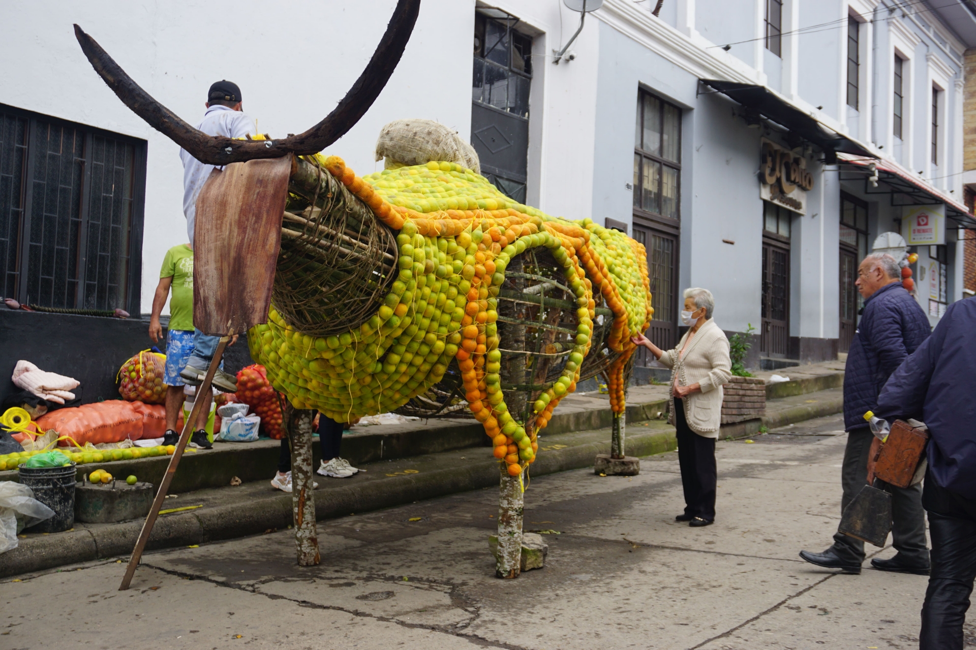 Hay gente que amanece bailando. Hay otros tantos que madrugan el domingo para poder apreciar las estructuras de frutas ya terminadas y sacar fotografías antes de que sea cada vez más difícil caminar por las calles del pueblo, pues a las nueve de la mañana la gente que está en el municipio sale con sus familias a recorrer el parque y a comprar los productos que se ofertan en las ferias, desde globos y sombreros, hasta cervezas y cholaos.