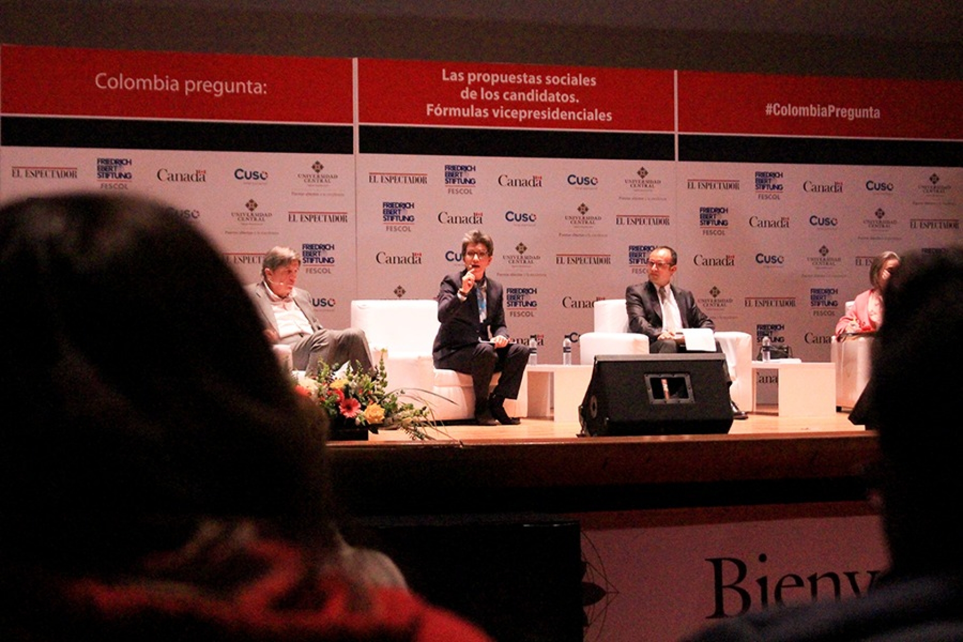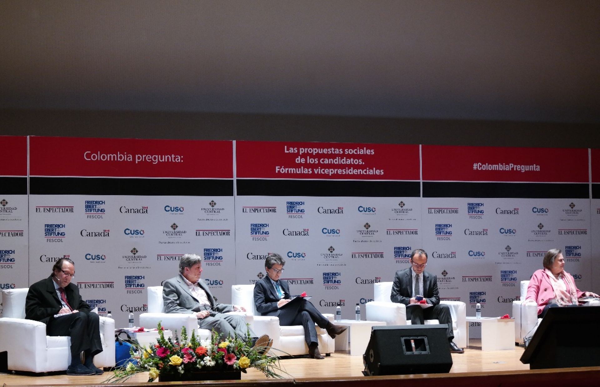 Los 'vices' se tomaron la palabra en el debate titulado “Colombia pregunta: las propuestas sociales de los candidatos: fórmulas vicepresidenciales”, organizado por El Espectador, la fundación alemanda Fescol, Cuso Internacional-Gobierno de Canada y la Universidad Central. Élber Gutiérrez, jefe de redacción y editor multimedia de El Espectador, moderó el panel.