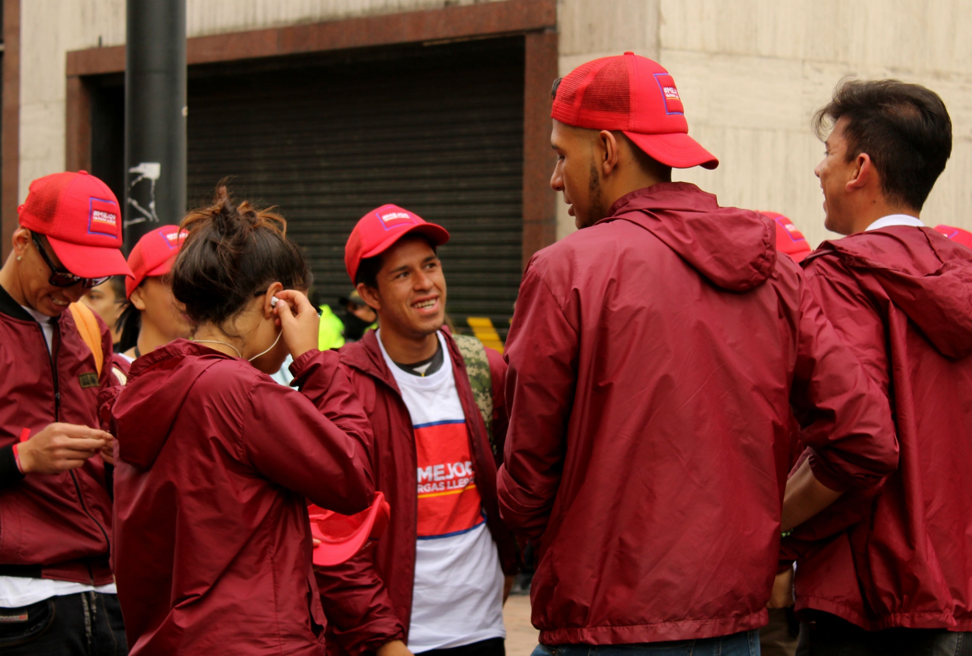 A un mes de las elecciones presidenciales, la ciudadanía muestra cada día su respaldo a los candidatos presidenciales con cánticos, camisetas y afiches. Seguidores de Germán Vargas Lleras, Iván Duque y Humberto de la Calle se situaron frente al Jockey Club de la Universidad del Rosario, en el centro de Bogotá, para manifestar su apoyo a cada uno de los candidatos.