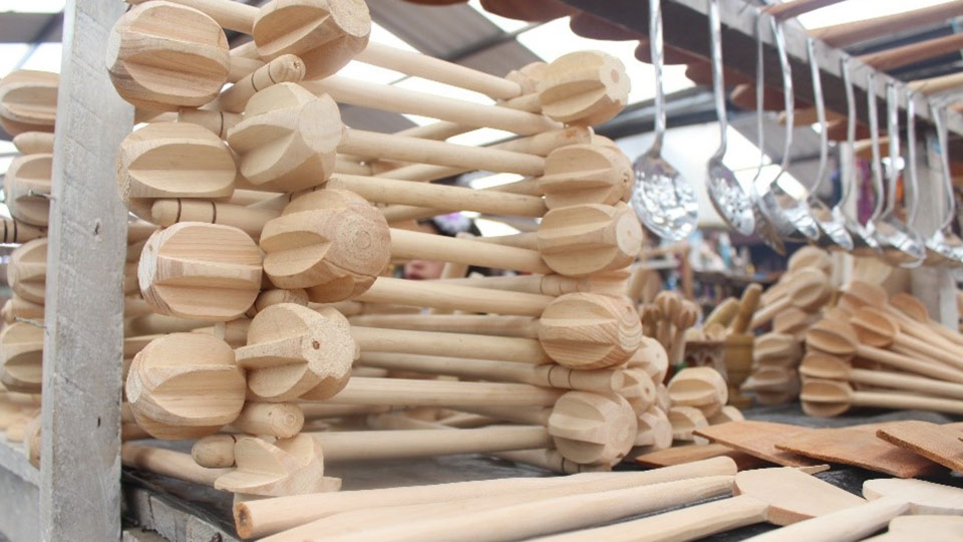 La industrialización de utensilios de cocina es muy variada en Colombia, pues así como hay empresas que le surten a grandes cadenas, hay otros trabajadores que laboran independiente y de manera artesanal. Como el proveedor de Jorge, a quien conoció hace 40 años cuando fue a Santander y vió por primera vez a Sigilfredo trabajando con los medianos troncos de madera, dándoles forma de cucharones. “A mí Sigilfredo me manda los utensilios en la madera que yo quiera o la gente me pida”.