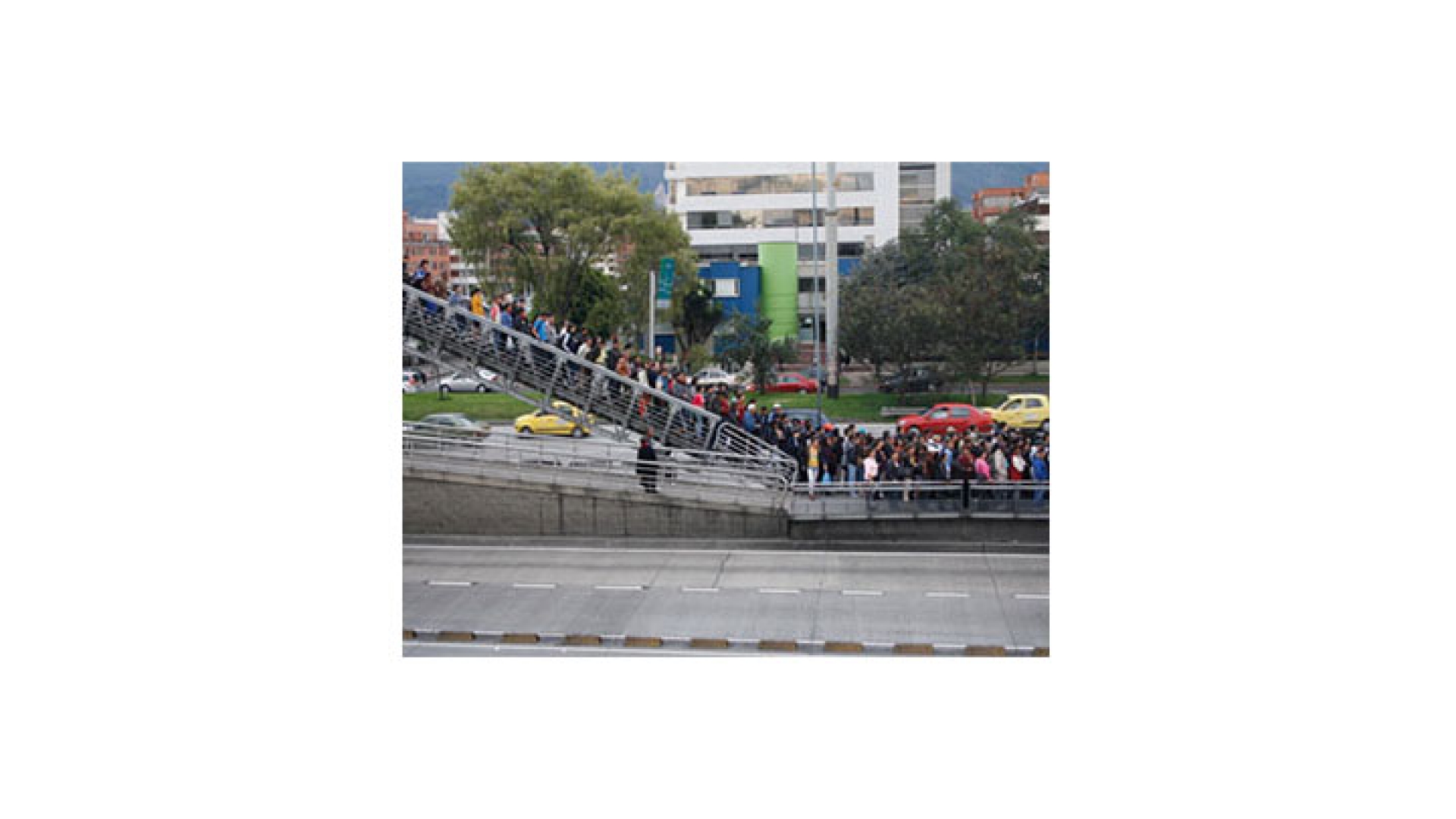 Así luce la estación de Transmilenio de la Autopista Norte con calle 127 a las 5:30 p.m. Las filas llegan hasta la parte superior del puente, los usuarios deben esperar alrededor de 30 minutos para poder ingresar a la estación y adentro se encuentran con más personas de las que el lugar puede albergar.
