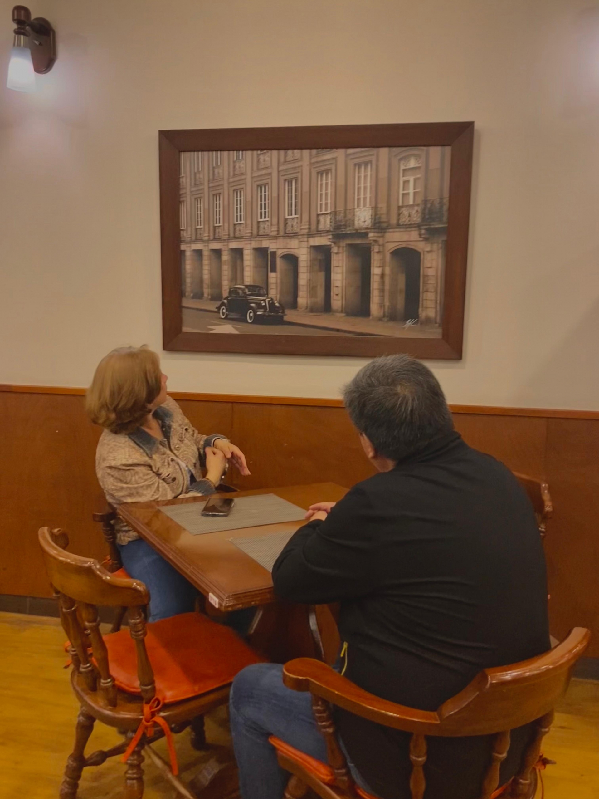 Una pareja entró a La Florida a las 10:30 de la mañana, la señora tenía cabello dorado que le llegaba hasta los hombros con una blusa beige, su acompañante de una contextura más grande traía una chaqueta negra. Fueron recibidos por el vigilante, Jaime, que lleva un mes abriendo las puertas del lugar donde el tiempo se desvanece, donde el aroma de café se siente desde la entrada del sitio. La pareja al sentarse pide unos desayunos con café, mientras esperan sus pedidos observan la fotografía pegada en la pared tomada en el año 1949.