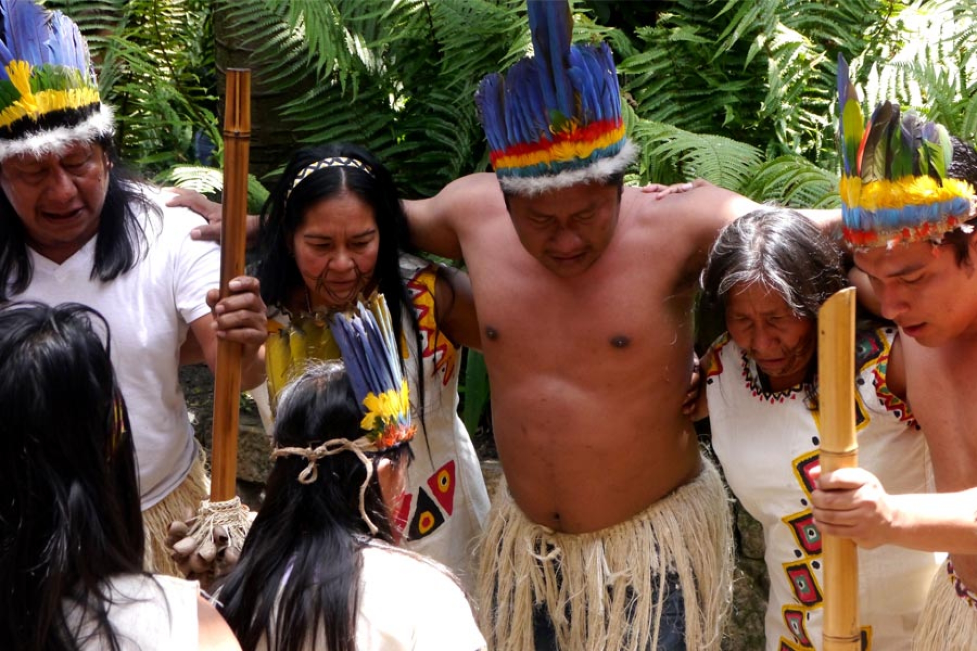 El chaman Uitoto da inicio a la danza ritual a través de cantos sagrados.
