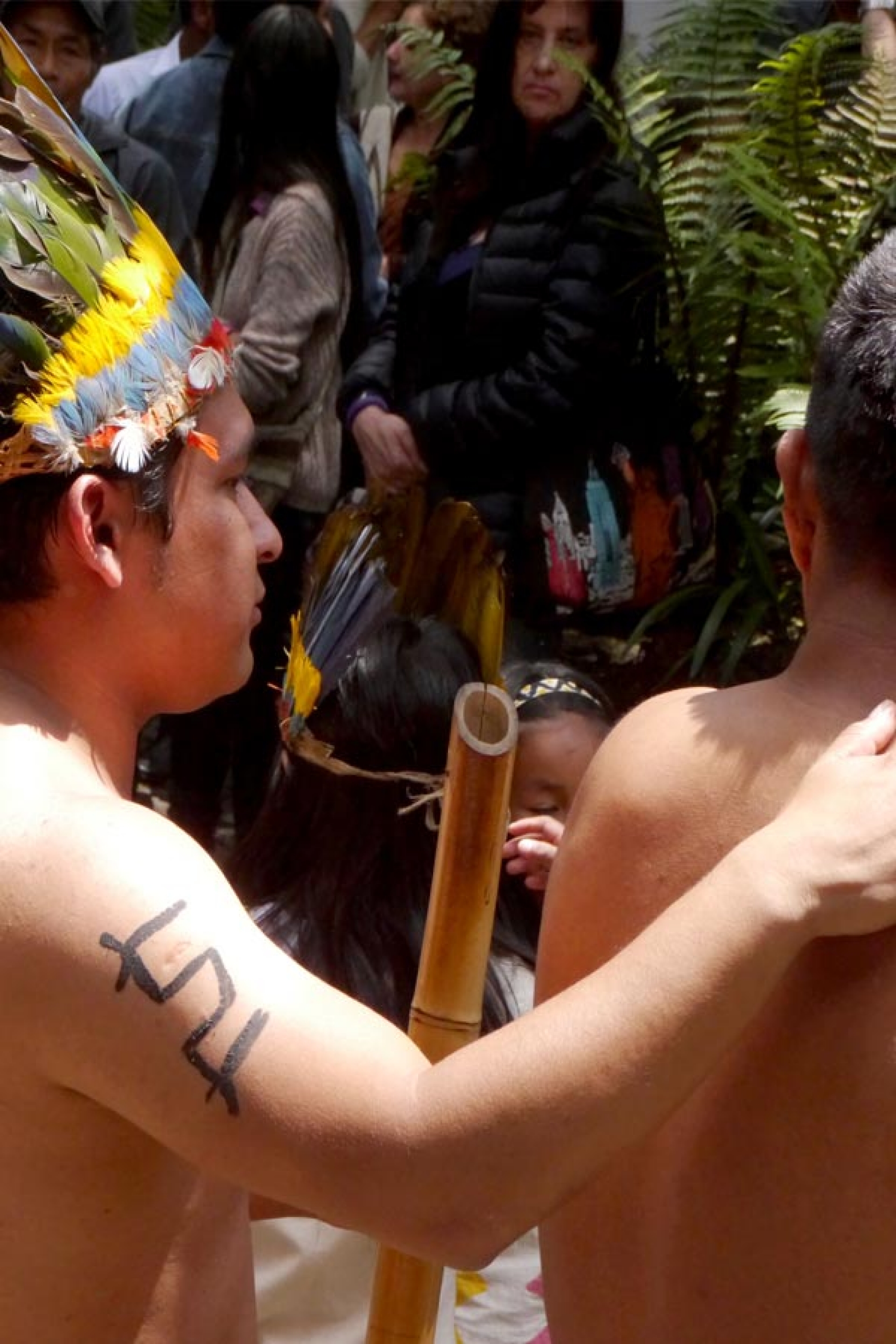 Un hombre lleva plasmado en su piel un simbolo sagrado de la comunidad Uitoto.