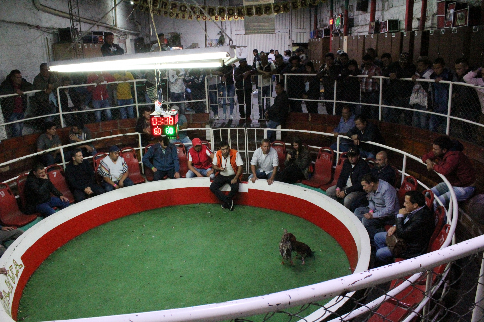 8 p.m. El revuelo es digno del inicio de cualquier tipo de pelea, los hombres se mueven de un lado a otro, algunos van a reponer sus botellas de cerveza ya vacías, otros caminan campantes entre los demás recogiendo las apuestas y otros tantos terminan de alistar a sus gallos.