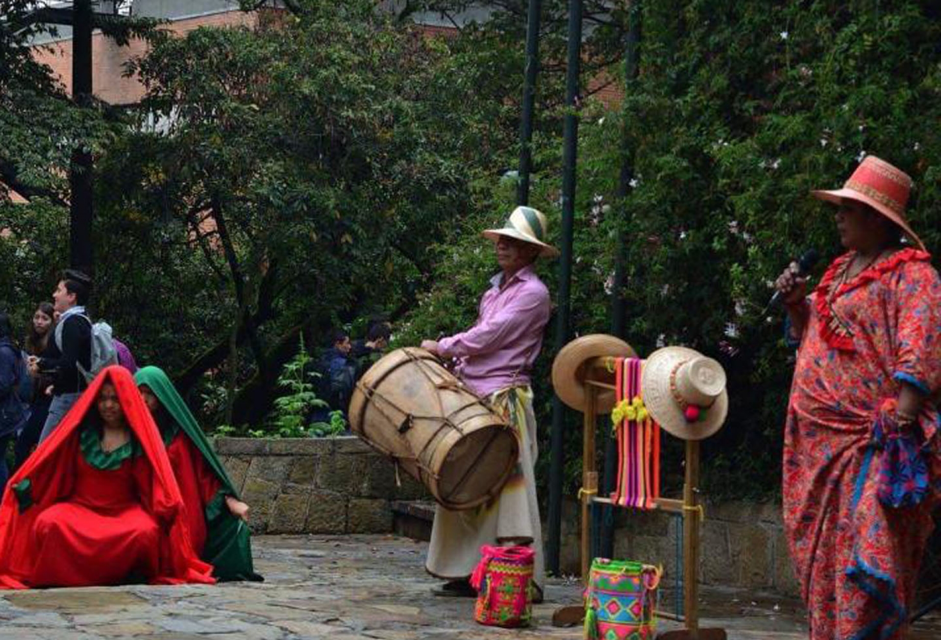 "Somos el cielo": noche en Camarones, La Guajira, 2017.|Danza de la Yonna.|Estudiantes Wayúu de la Alta y media Guajira en la Universidad Externado de Colombia. Créditos: Heidy Gómez Vangrieken|Mujeres y hombres antes de bailar la Yonna, danza tradicional del pueblo Wayúu.|Toque de la kasha y presentación de la Yonna.|||