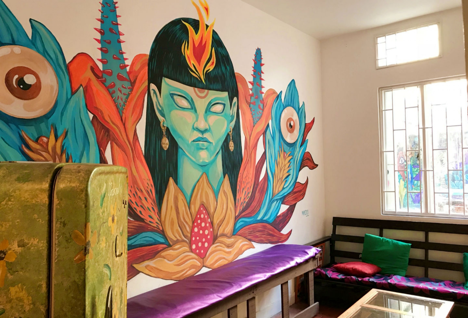 Asimismo, la creatividad y el talento de las artistas Sol Trejos y La Wife fueron indispensables para darle color, simbolismo y vida a cada rincón de La Morada. Estas mujeres no solo plasmaron en murales los ideales de lucha, sino que también donaron la pintura y su mano de obra.
