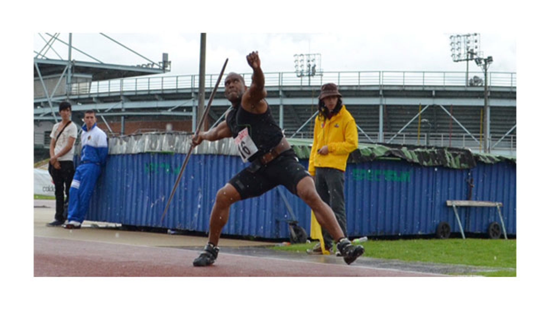 En la foto aparece Rolando Palacios, competidor por el departamento de Antioquia, ejecutando su lanzamiento en la modalidad de Jabalina- Mayores, en la cual obtuvo medalla de oro alcanzando una longitud de 75.02 metros de distancia en su lanzamiento.