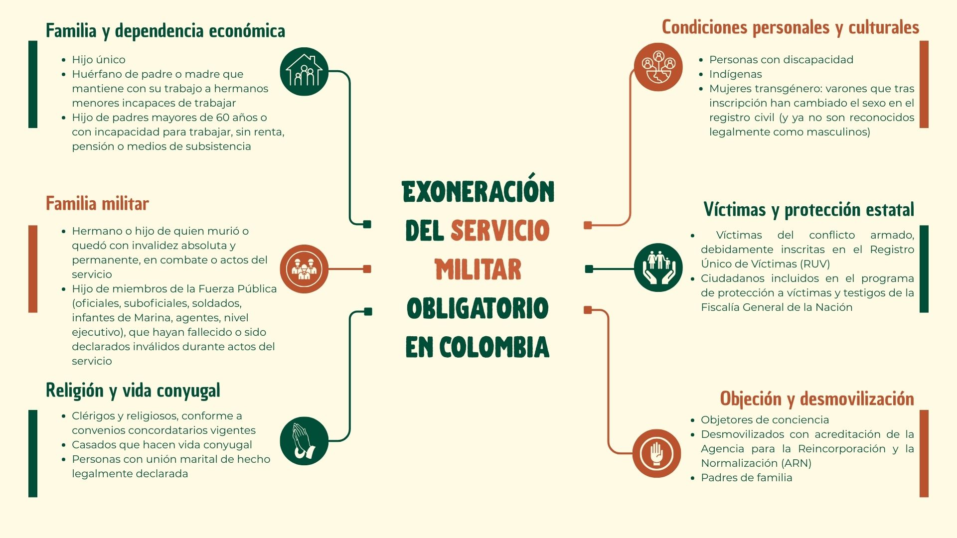 La Ley de Reclutamiento 1861 de 2017 establece en el Parágrafo 4 que: “Hasta antes de la incorporación, el ciudadano deberá manifestar por escrito o de manera verbal, si tiene conocimiento de estar inmerso en alguna causal de exoneración del servicio militar o de cualquier otra circunstancia que lo imposibilite para prestar el servicio militar. En el evento que el ciudadano realice la manifestación verbal, la autoridad de Reclutamiento dejará constancia de la manifestación y facilitará los medios para recepcionarla de manera escrita”.