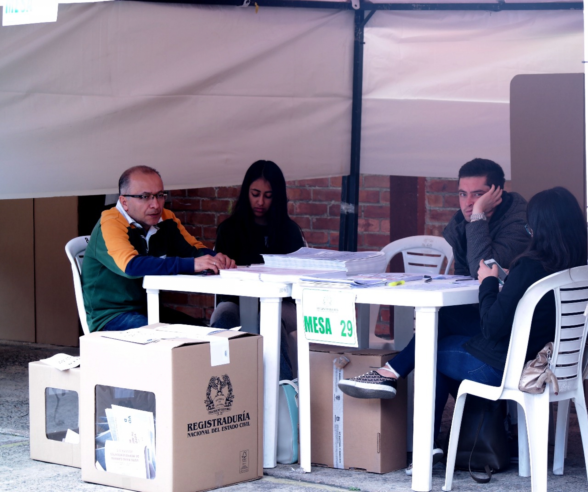 En otros puntos de Bogotá, como el Jardín infantil Pablo de Tarso-Tunjuelito, se dividieron los tarjetones para suplir la escasez de ciertas mesas.