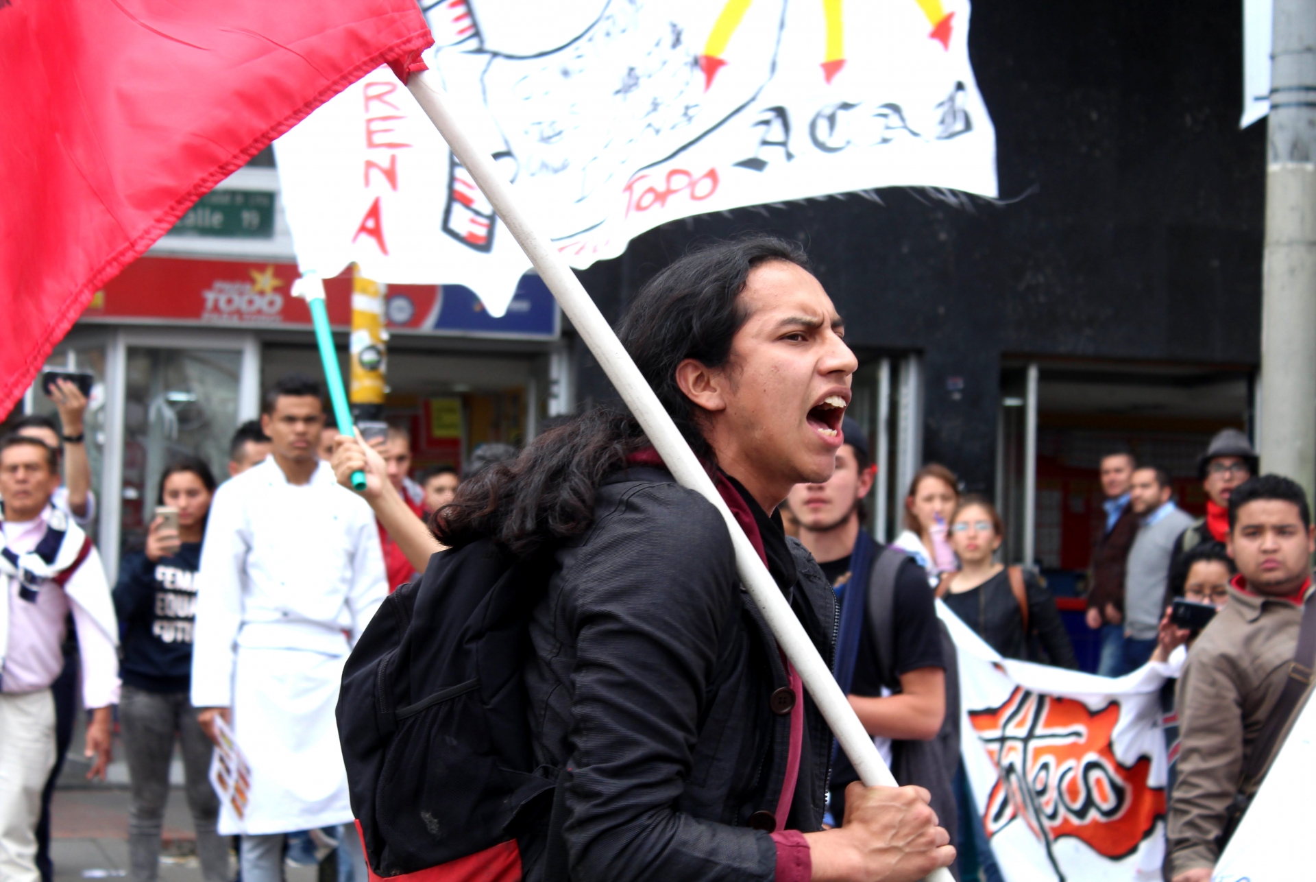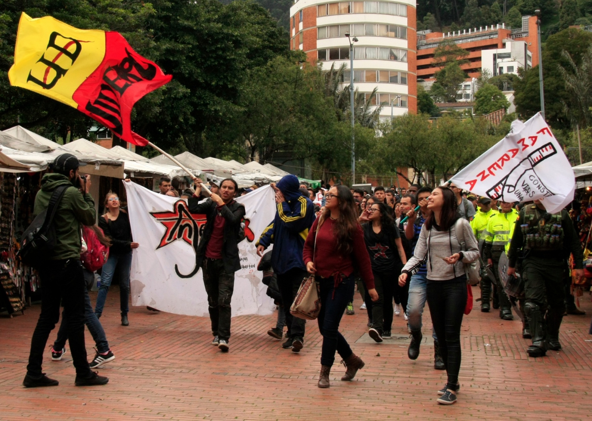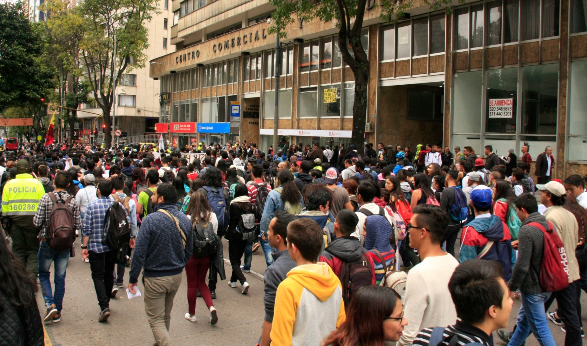 La marcha de los jóvenes de la Universidad Nacional, la Universidad de Cundinamarca, la Uniminuto, la Universidad Distrital, la Universidad Pedagógica, entre otras instituciones, causó el colapso del tráfico en varios puntos de la ciudad, así como el cierre de estaciones de Transmilenio, sobre todo en el Centro de Bogotá. En la movilización no se presentaron disturbios violentos, pero los manifestantes dejaron rayones en paredes, suelos y estaciones.