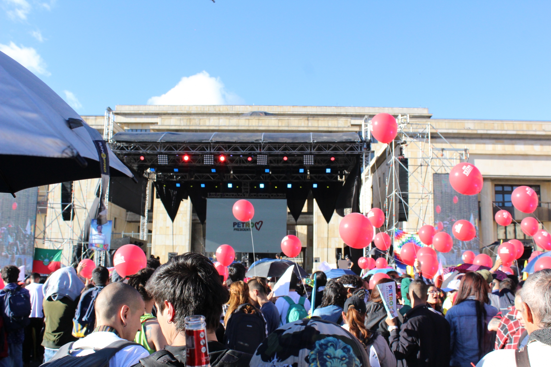 Cerca de 55.000 personas se congregaron en la Plaza de Bolívar de Bogotá para presencia este cierre de campaña. Entre ellos se encontraban estudiantes universitarios, líderes indígenas, personas de distintas regiones. La seguridad estuvo a cargo del Cabildo Indígena NASA de Bogotá, quienes acordonaron los alrededores de la tarima, y también del grupo de artes marciales de la Universidad Pedagógica.