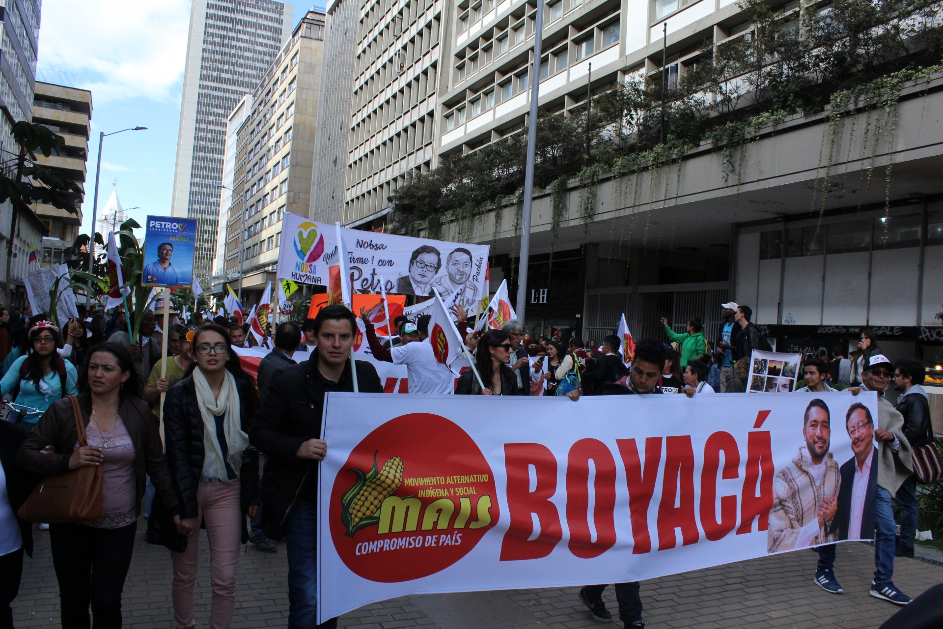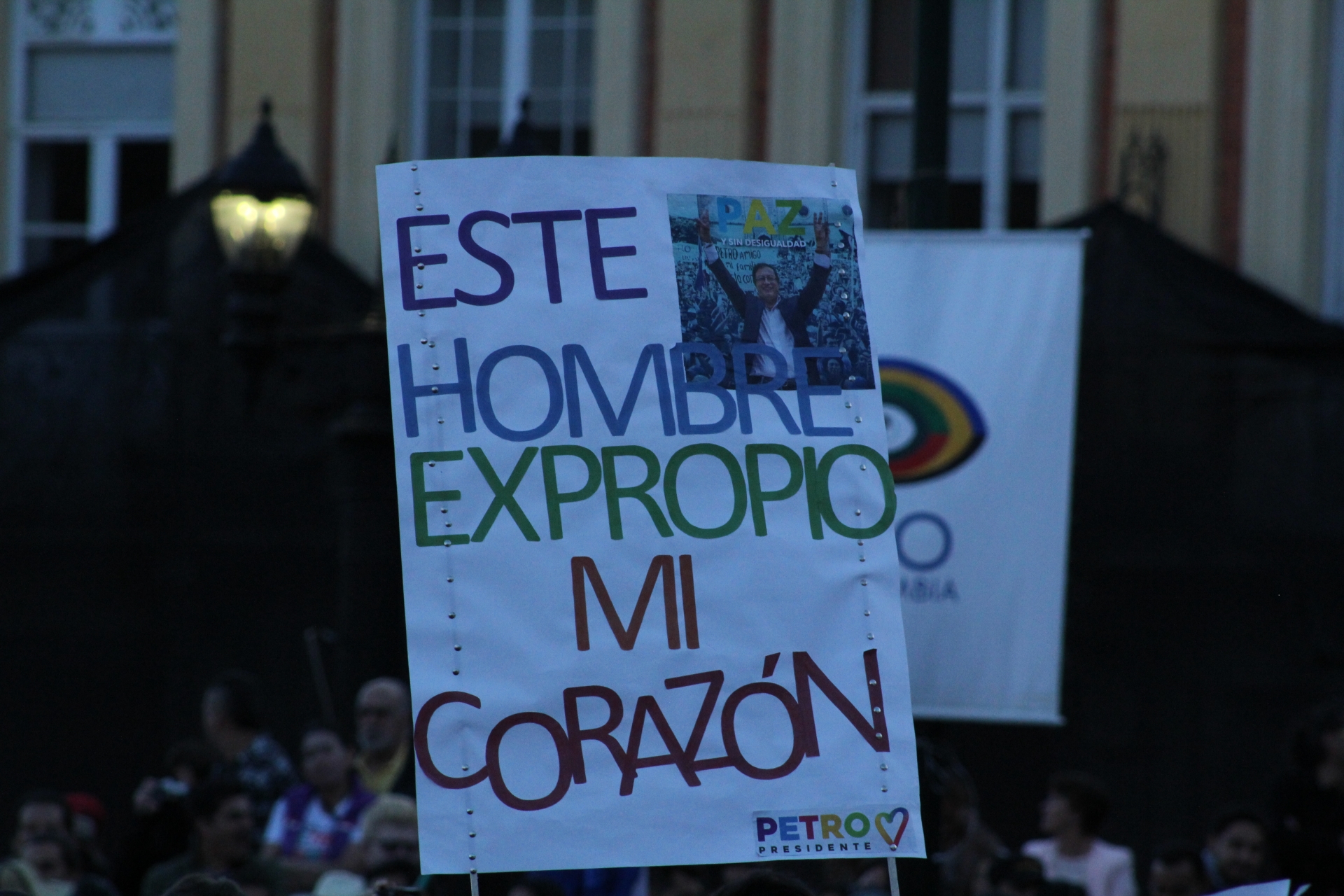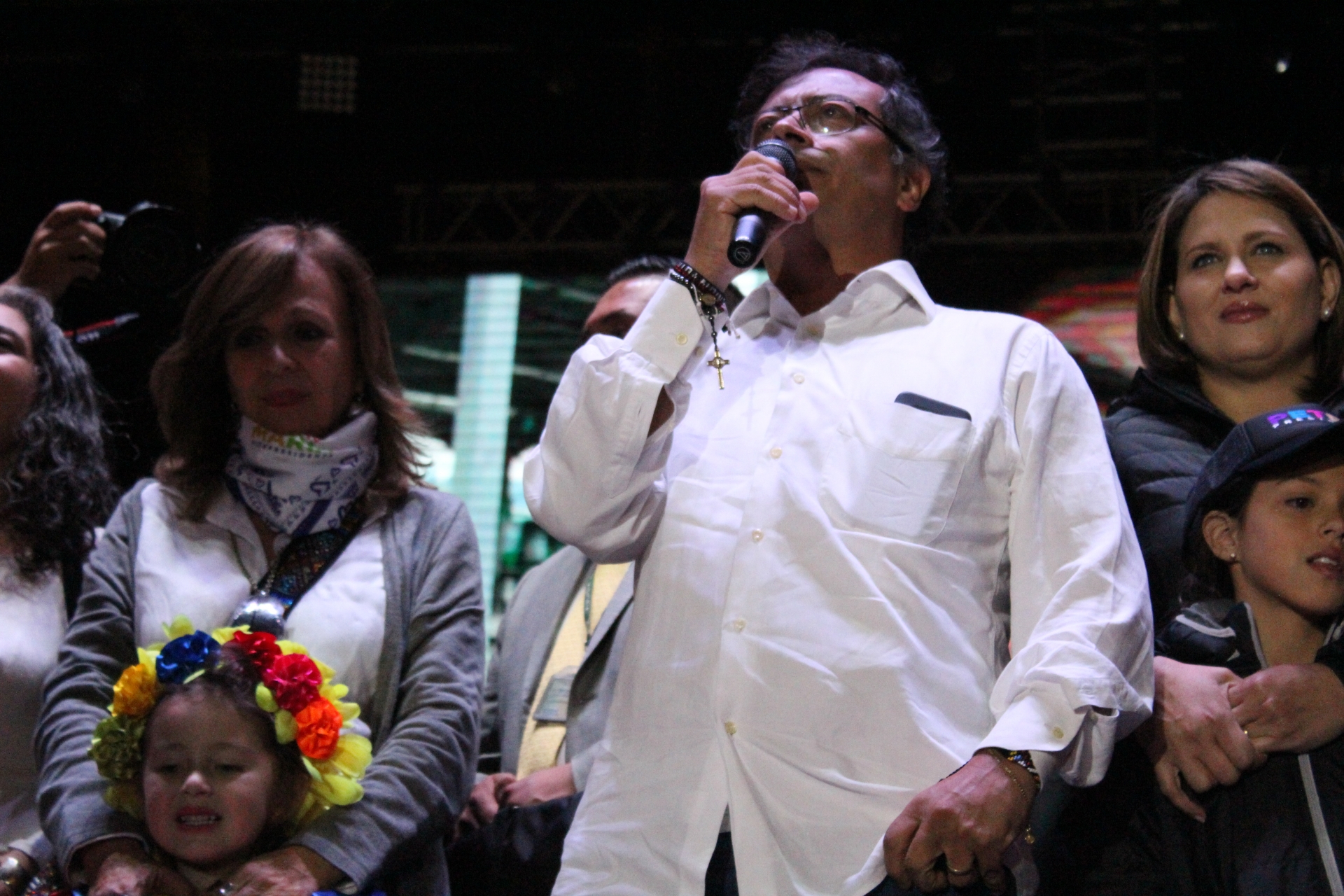 El pasado jueves 17 de mayo, miles de personas llenaron la Plaza de Bolívar en el centro de Bogotá para presenciar el discurso de cierre de campaña del candidato presidencial Gustavo Petro. En la tarima estuvo acompañado de su esposa Verónica Alcocer García e hijos, su fórmula vicepresidencial Ángela María Robledo y otras personalidades, como el jefe del movimiento Fuerza Ciudadana Carlos Caicedo, y los congresistas electos de la Lista de la Decencia: Gustavo Bolívar, Aída Avella, Gloria Flórez, María José Pizarro, David Racero y Cesar Pachón.