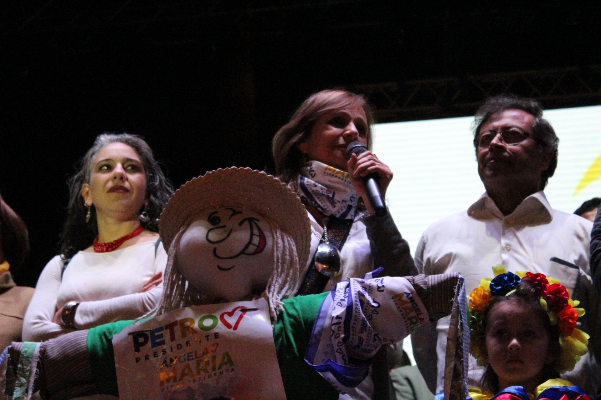 Tras las presentaciones musicales, el discurso arrancó con una breve intervención de Ángela María Robledo, quien se refirió a la última vez que Petro había llenado la mítica Plazsa, cuando fue destituido de su cargo de alcalde de Bogotá por el entonces procurador Alejandro Ordóñez Maldonado por la famosa crisis de las basuras.
