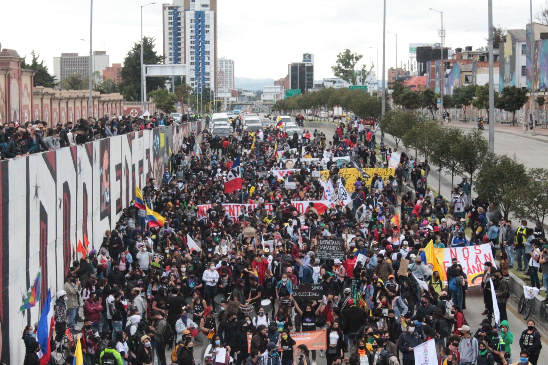 Vale la pena resaltar que Miguel Ceballos, Alto Comisionado para la Paz del gobierno Duque, señaló en entrevista para El Tiempo: "Detrás de la destrucción de los CAI en diferentes ciudades del país, existe un claro y premeditado plan de grupos como el Eln y la disidencias de las Farc". En relativa calma y de manera pacífica transcurrió la jornada de movilizaciones y protestas en distintas ciudades del país. En Bogotá, ciudad que registró la mayor concentración de ciudadanos en marchas y plantones, se realizó una marcha pacífica con un gran número de expresiones artísticas. Una de ellas se llevó a cabo en el Parque Nacional.