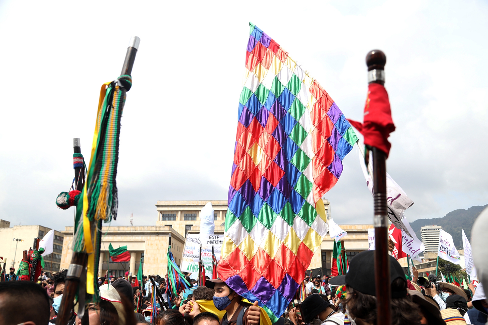 Miles de personas, pertenecientes a la Minga Indígena de Colombia, marcharon ayer desde el Palacio de los Deportes hasta la Plaza Simón Bolívar con el fin de buscar un diálogo con el Gobierno Nacional del país. A su recibimiento acudió la alcaldesa de Bogotá, Claudia López, una vez que llegaron a la Plaza Bolívar, a la espera de saber qué sucederá esta semana entre la minga y el Gobierno.