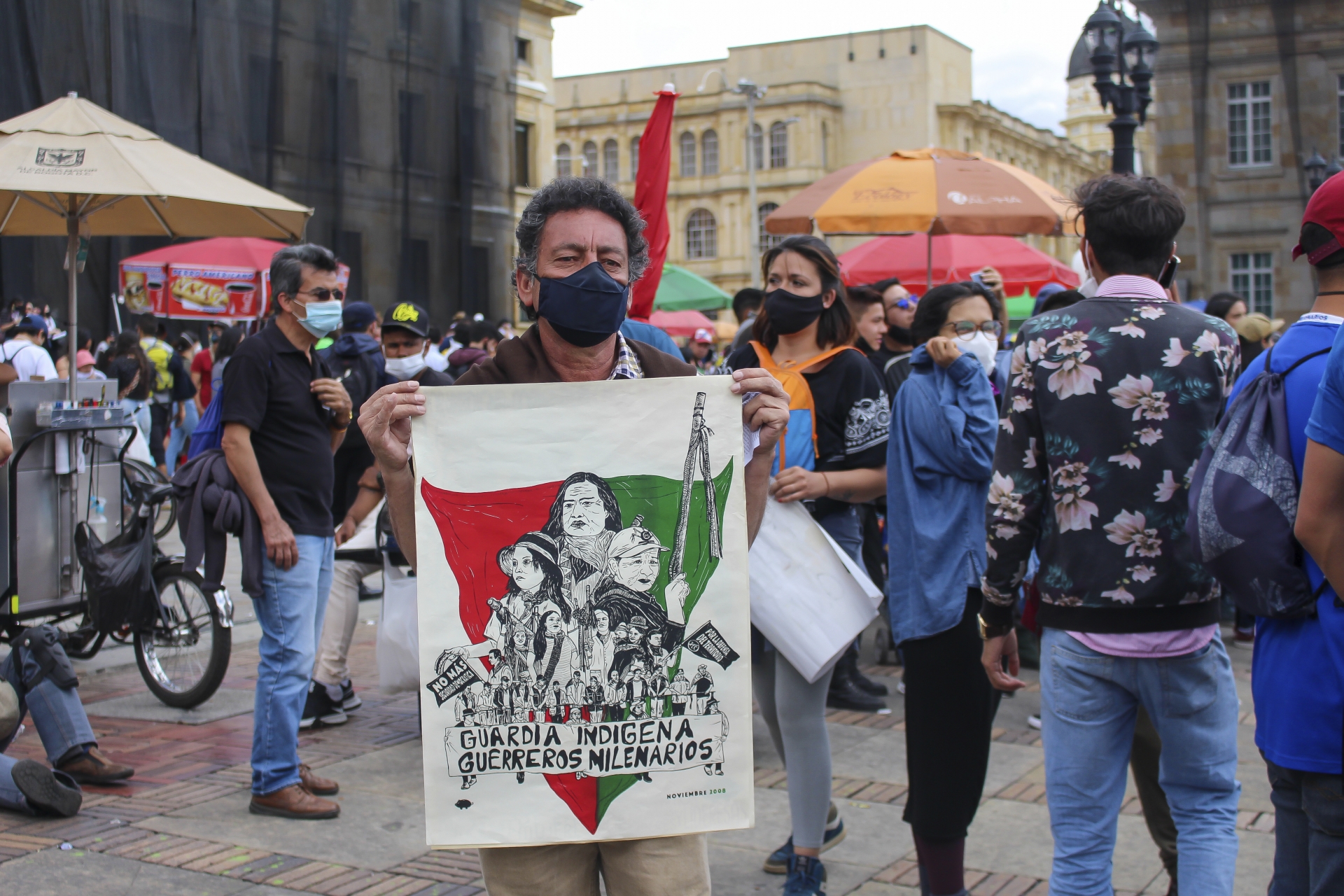 El Parque Nacional y el Monumento a los Héroes en Bogotá se colmaron, a partir de las nueve de la mañana, de las diferentes agremiaciones, profesores, estudiantes y trabajadores. Desde allí, dieron inicio a su recorrido hacia el centro de la ciudad. La minga indígena acompañó al Paro Nacional en las primeras horas en la Plaza de Bolívar. Posteriormente, emprendieron su viaje con destino a sus territorios:
