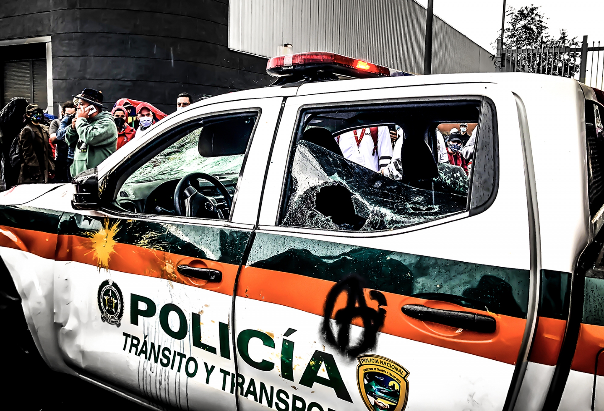 En las horas de la tarde, cuando la marcha llegó a las Américas, se rayaron y rompieron los vidrios de algunas estaciones de Transmilenio como la de Distrito Grafiti, Marsella y Mandalay. Las instalaciones de RCN televisión también se vieron afectadas. Los manifestantes mostraron su inconformidad con los medios de comunicación colombianos y su falta de conciencia frente a la situación actual. A causa de los daños, se dio orden al ESMAD para intervenir y finalizar la manifestación. Los uniformados lanzaron gases y asustaron a las personas al acercarse a estos, pero la marcha continuó. Su ruta estaba marcada y no se detendría hasta llegar a Banderas.