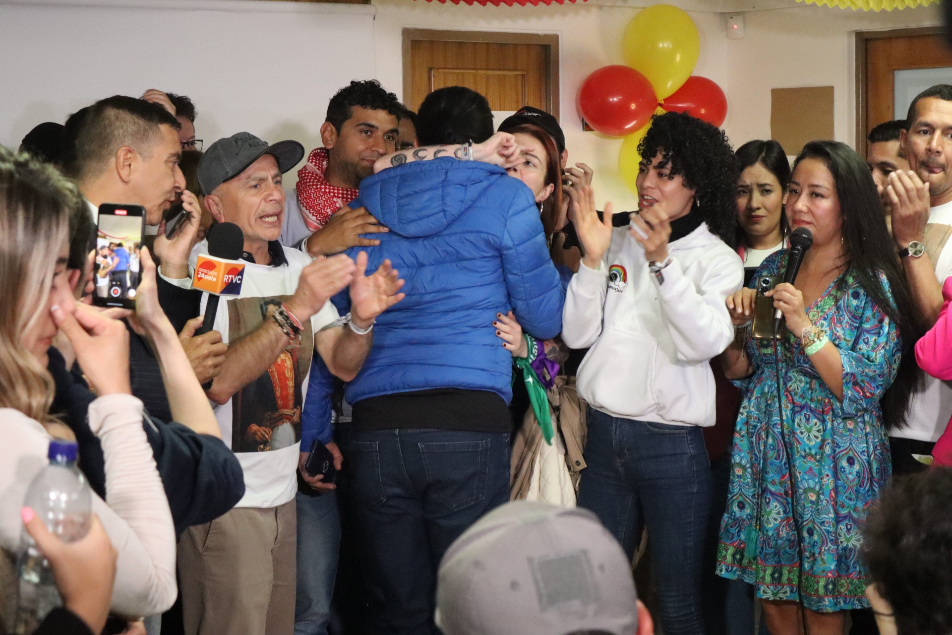 Entre periodistas agitados, votantes emocionados y colaboradores de campaña, la atmósfera en la sede de campaña de Gustavo Bolívar era asfixiante. Antes de anunciar los resultados definitivos, el público aguardaba con paciencia, escuchando atentamente cada uno de los boletines del escrutinio de la jornada electoral. Tras la divulgación del séptimo boletín, el veredicto estaba claro: Bolívar ocupaba el tercer lugar en el podio. A pesar de ello, el escritor se dirigió a su sede de campaña para felicitar al ganador, Luis Carlos Galán, y al segundo lugar, Juan Manuel Oviedo. Aquí presentamos una fotogalería que captura este emotivo momento.