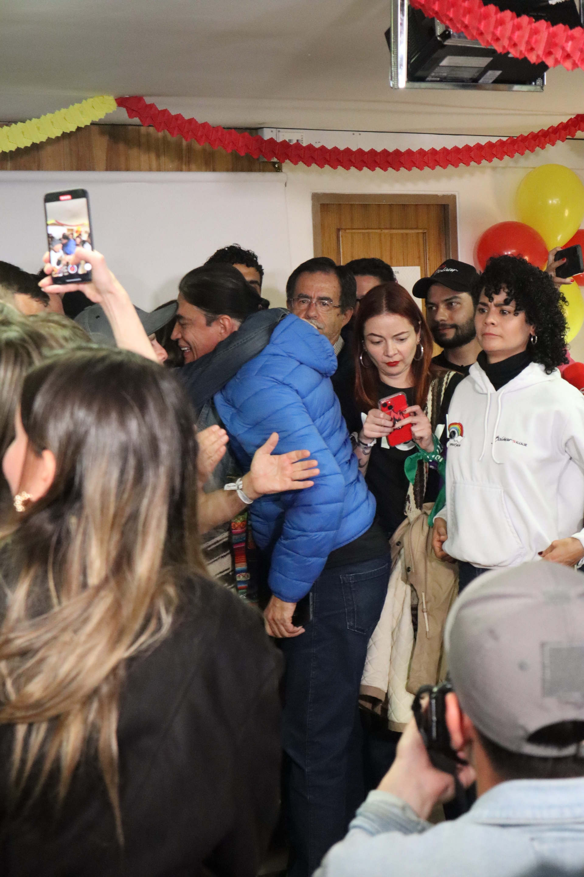 Gustavo Bolivar llega a su sede de campaña luego de que se anunciara la victoria de Galán