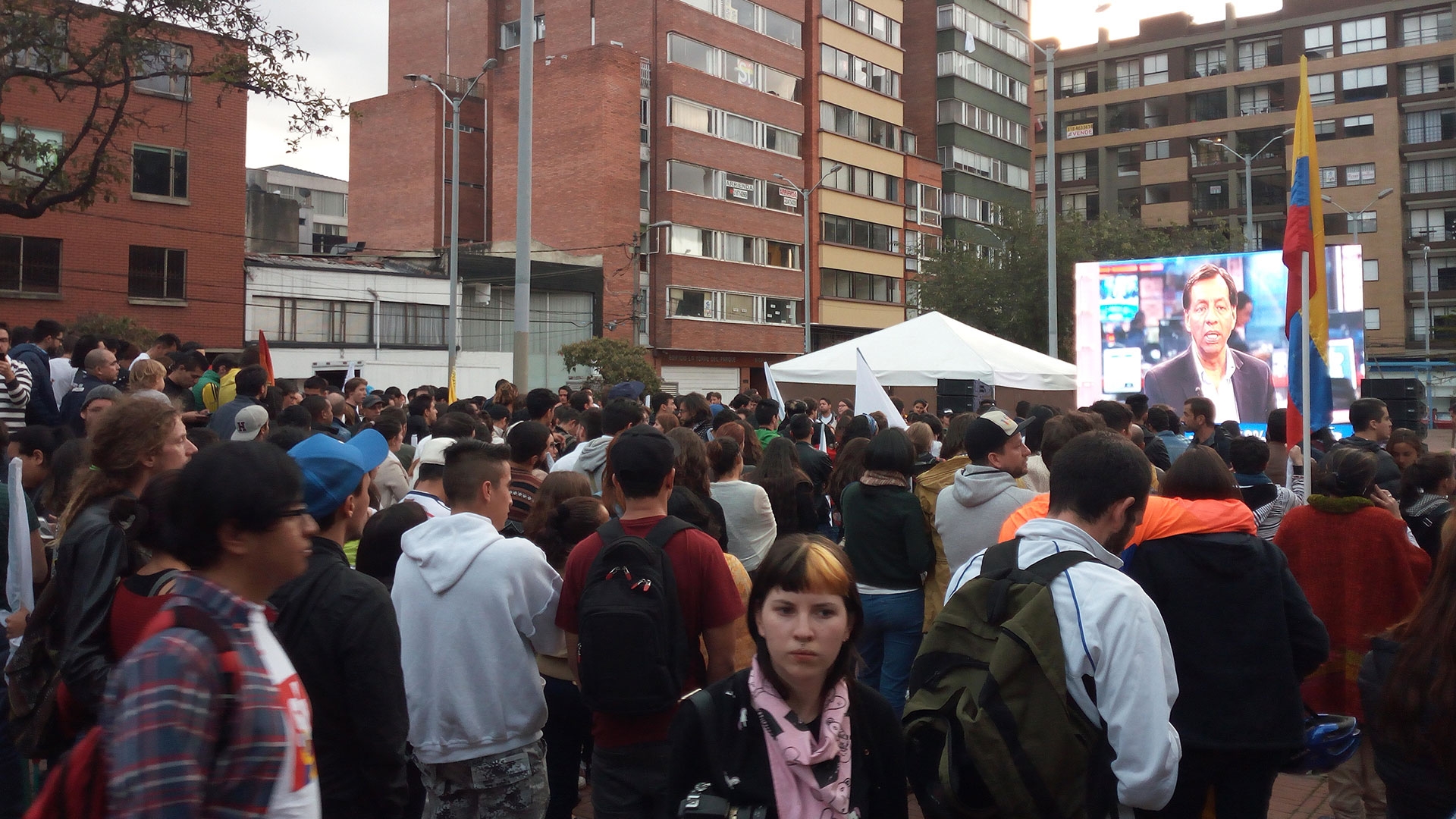 En el parque de la calle 60 con carrera séptima en la ciudad de Bogotá, las senadoras Claudia López y Angélica Lozano se reunieron junto a un grupo de personas para conocer los resultados del plebiscito por la paz. La senadora Lozano se refirió a la búsqueda de la paz como "una política de estado que compete a la ciudadanía, y por lo menos a los próximos cinco gobiernos".