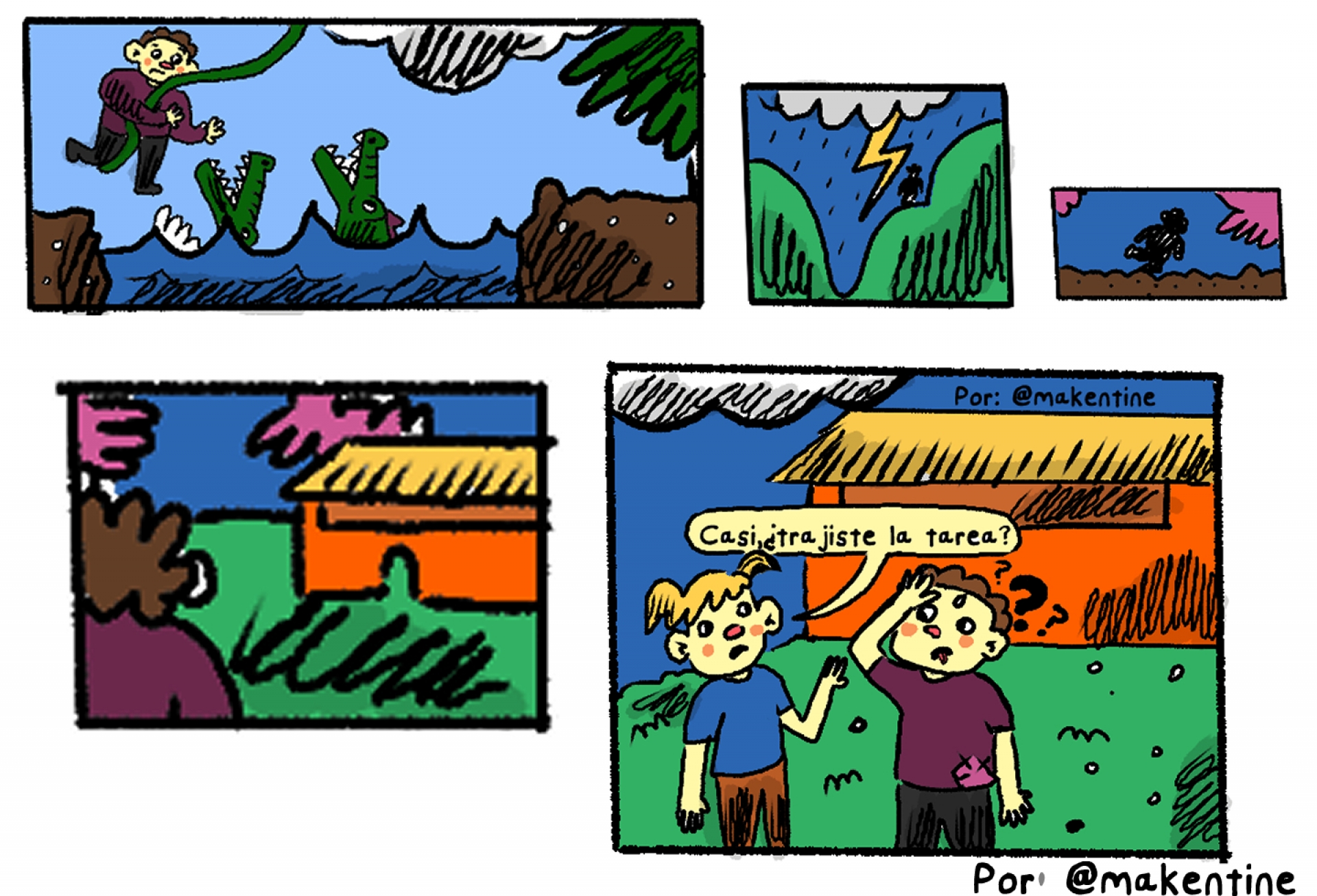 En esta viñeta para Plaza Capital le damos la bienvenida a Casimiro, un personaje muy particular al que los años hicieron un hombre sabio. Al ver que varios niños perdieron el año en el país por no tener internet Casimiro recuerda las dificultades que vivió para poder llegar al salón de clases de su pueblo. Una realidad que afectó en su momento y volverá a afectar a los niños de veredas lejanas que deben recorrer kilómetros para sentarse en un salón de clase. Este, junto a otras dificultades como no contar con internet o con poca señal y datos para descargar las guías de clase, se convierten en los principales obstáculos materiales que debe enfrentar un alumno para educarse en Colombia.