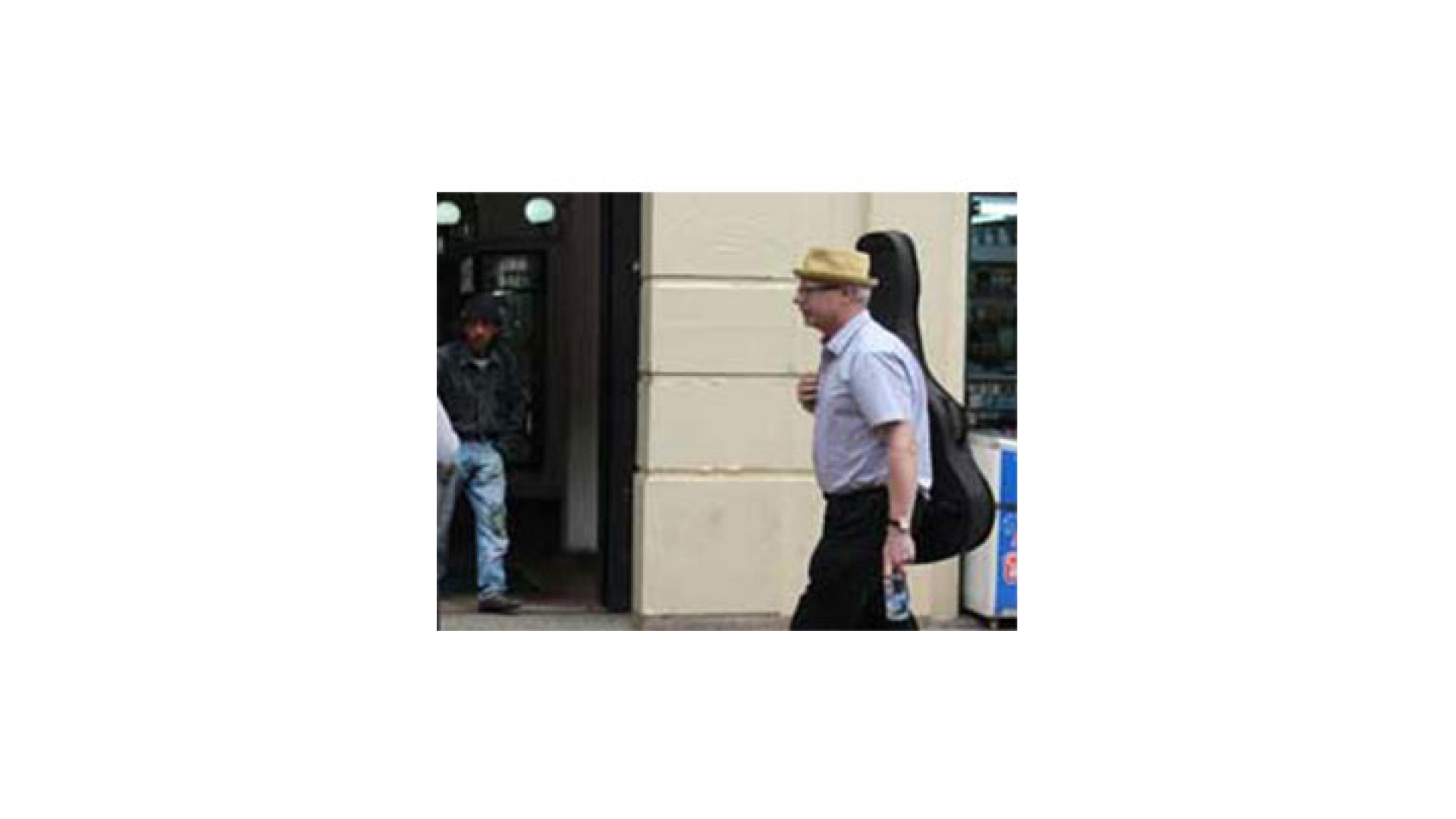 En los intermedios de las canciones de funk, blues, y jazz cantadas en inglés por Simón, se acercan las personas a dejarle monedas en el estuche de la guitarra o para preguntarle por las clases que ofrece. El profesor Mcglynn, atiende a sus posibles clientes con un tosco español no tan sencillo de entender, les pide que le dejen su número celular que apunta en una hoja de block, toma de nuevo la guitarra y canta otra canción.