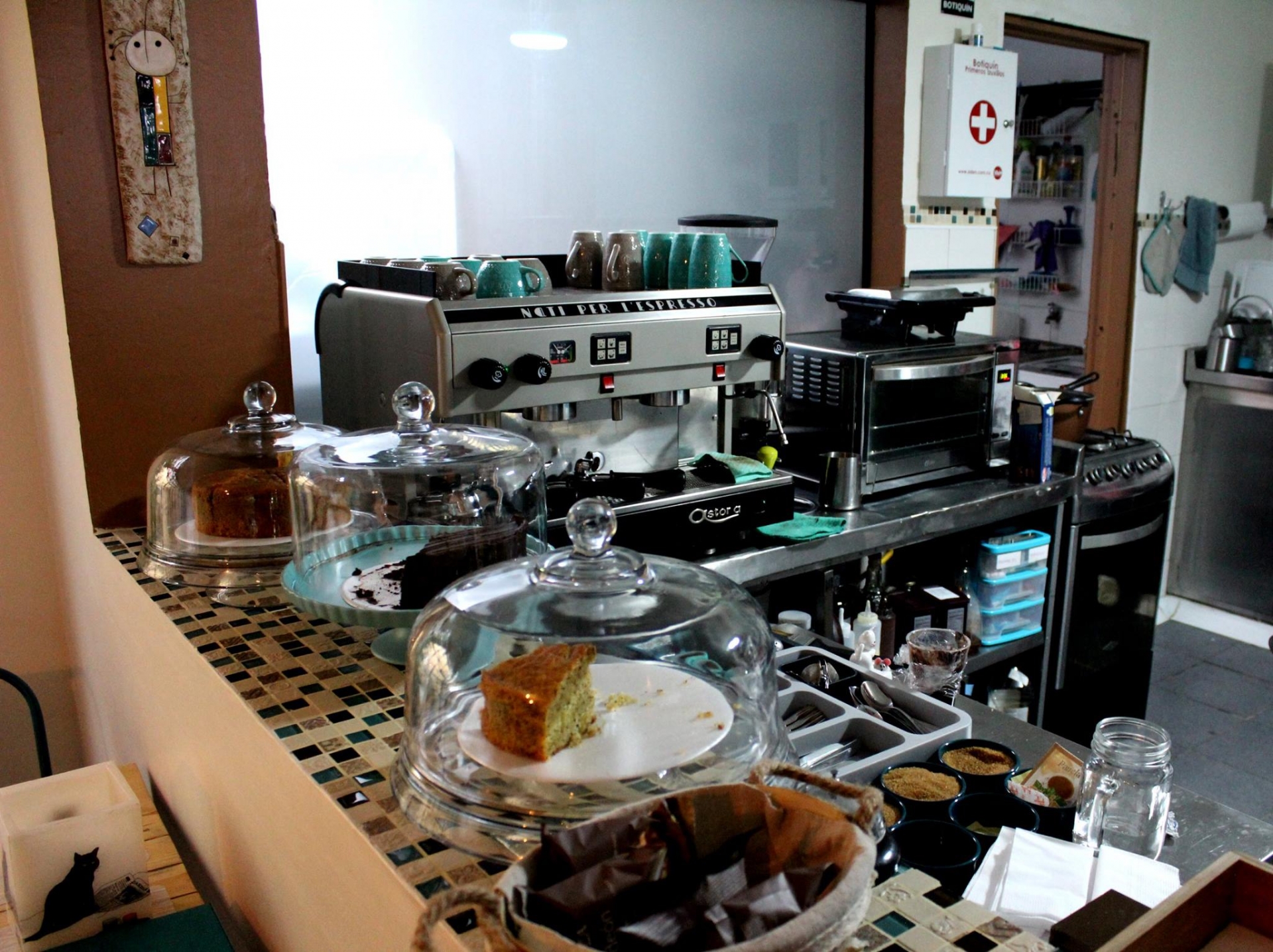 En Gatos y Blues no suena ninguna canción de moda, ningún hit, solo se escucha blues, jazz y bossa nova. La comida es de preparación artesanal. El pan, por ejemplo, lo hace una pareja que tiene una microempresa que se llama El Grano, sin levadura y con harinas orgánicas. El té de origen lo importa una chica que hace mezclas especiales, creando un producto de excelente calidad y hecho a mano. La fruta es de la mejor calidad, gracias a un proveedor pequeño. Y el café viene de la Sierra Nevada, de una asociación de campesinos e indígenas que se acogen a programas de sustitución de cultivo, es orgánico, delicioso e incomparable. Todo el mobiliario está hecho en materiales reciclables, amigables con el planeta y el tiempo con los gatos permite a los clientes desestresarse y pasar un momento de calidad consigo mismos.