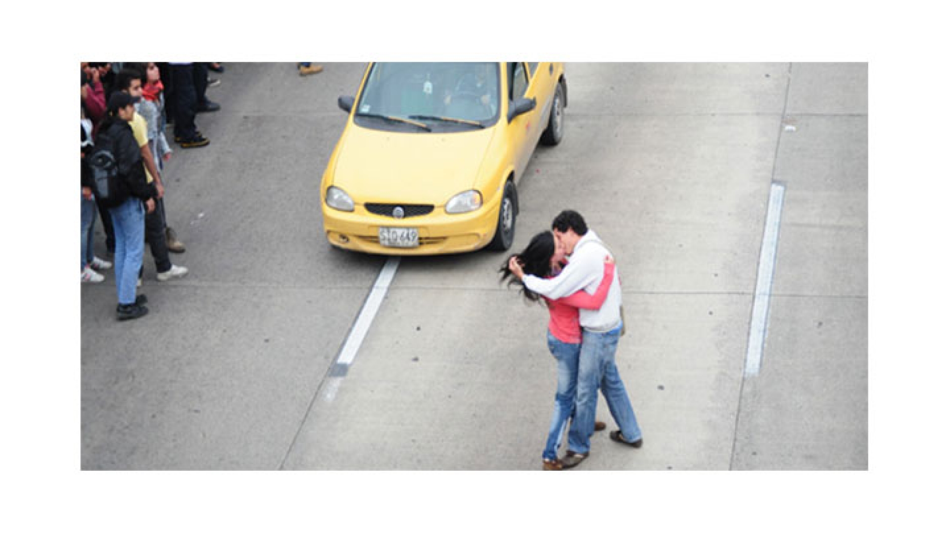 Algunos estudiantes de la Universidad Nacional pararon el tráfico de la carrera 30, invitando a los conductores que transitaban a unirse a la besatón.