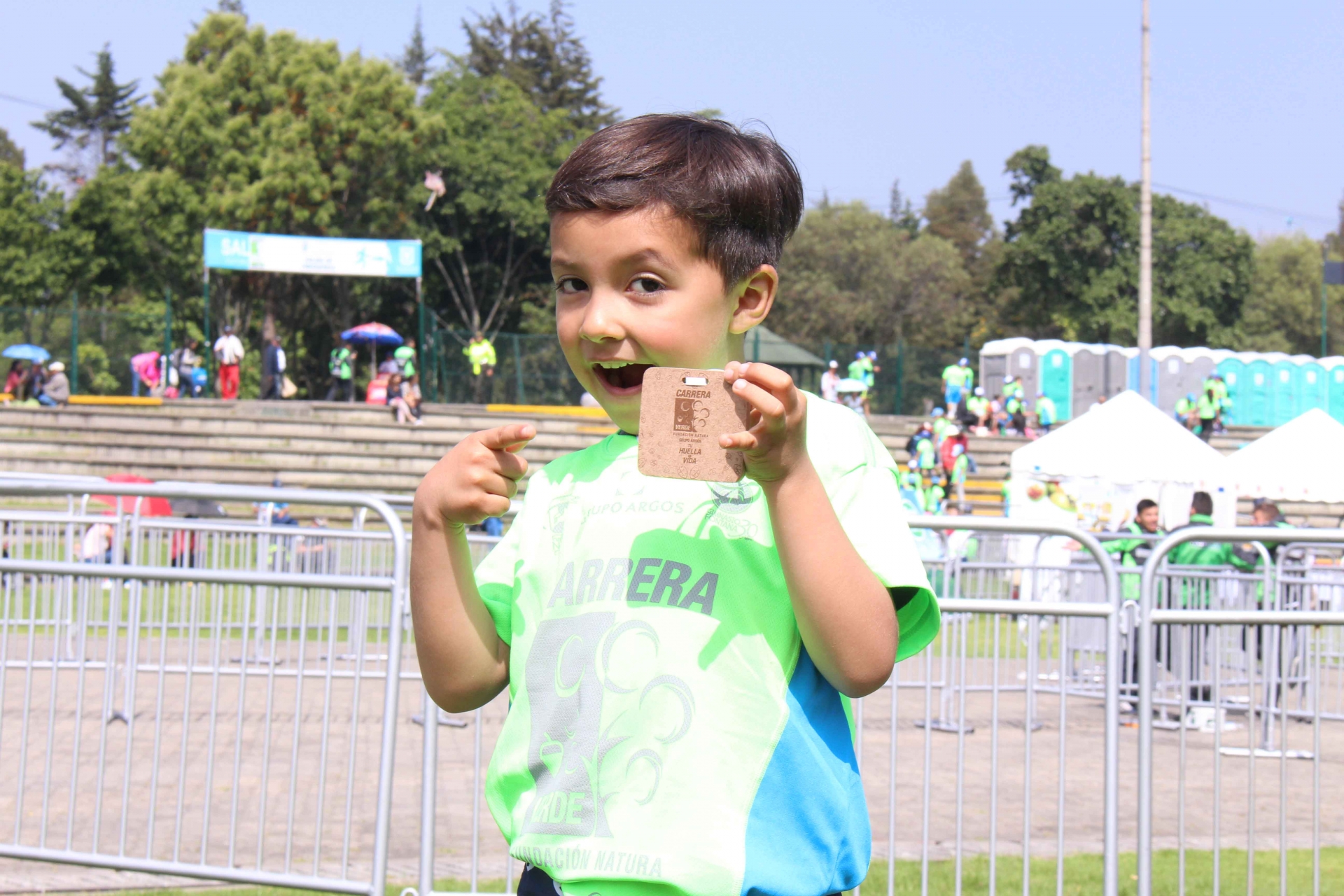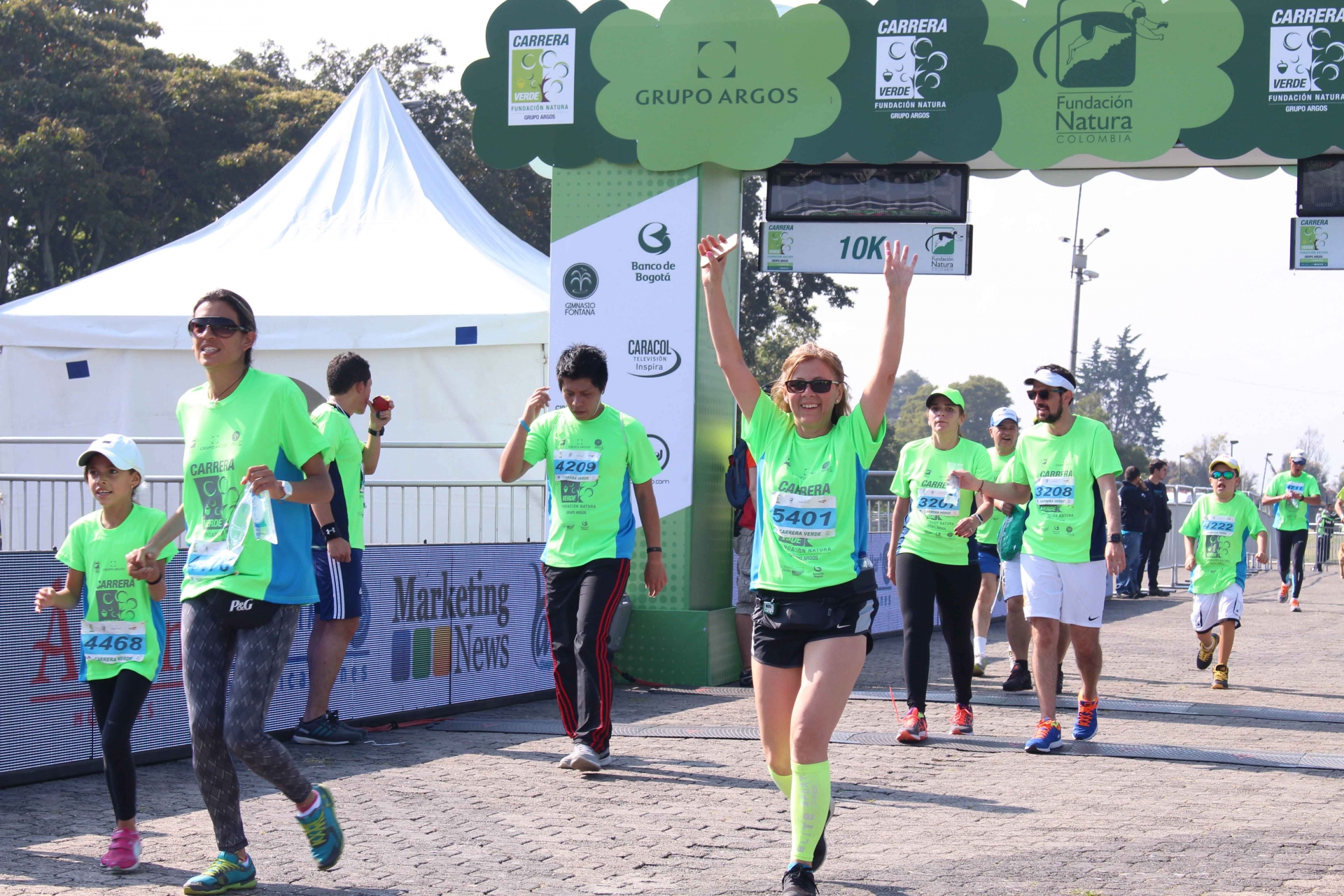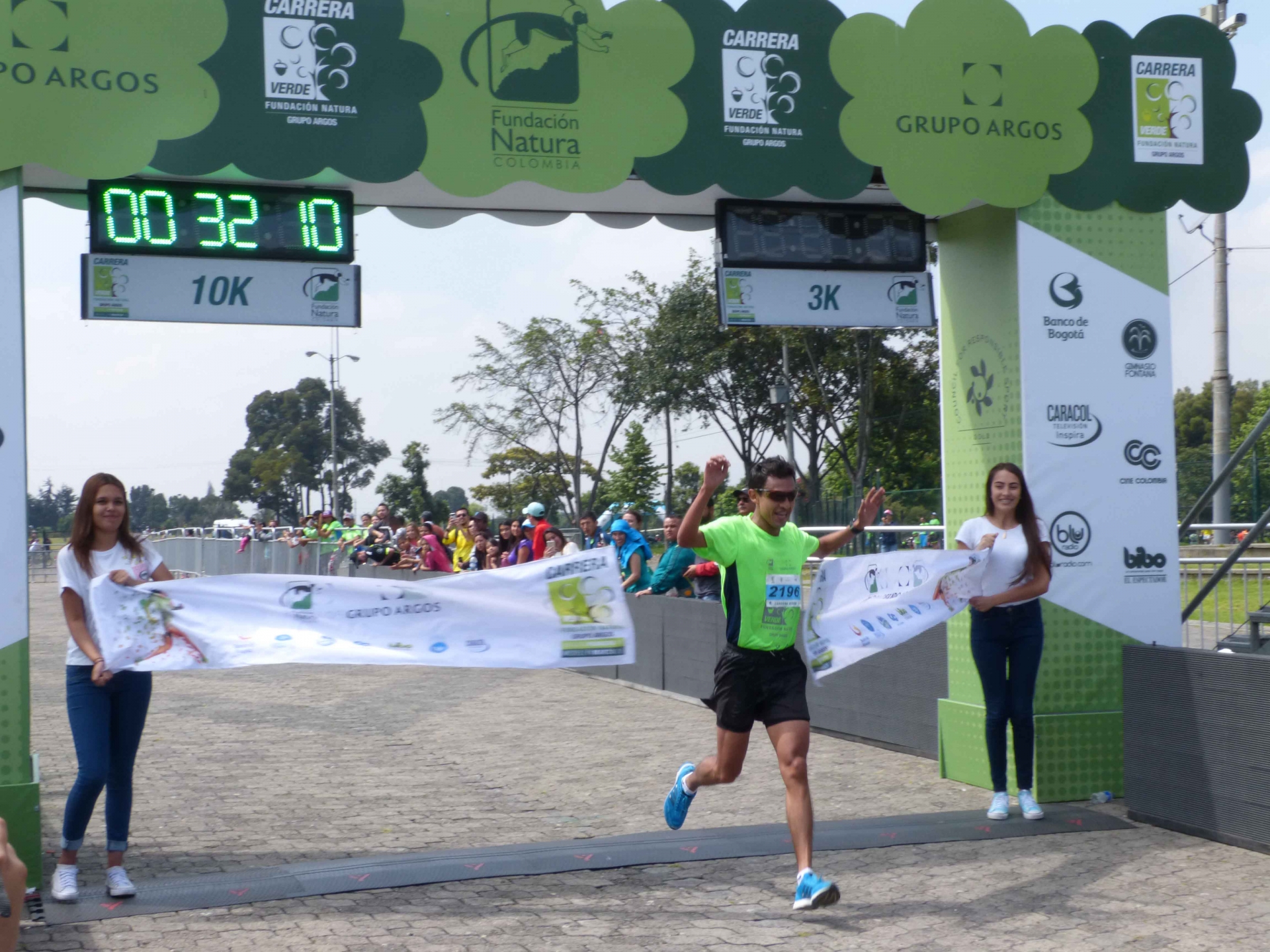El evento fué patrocinado por la Fundación Natura y Grupo Argos. Participaron más de 7.500 corredores|La jornada inició a las 7:30 a.m. en el parque Simón Bolívar|Por cada participante se sembrarán 3 árboles en reservas naturales. Este año se esperan sembrar cerca de 22.500 árboles|En el evento se realizó una carrera familiar de 3 kilómetros|Después de 25 minutos, llegaron los primeros corredores a la meta en la modalidad de 3 kilómetros|También se realizó una carrera competitiva de 10 kilómetros para mayores de 14 años|Fabián Daza fue el ganador en la carrera competitiva de 10 kilómetros|Rubi Riativa ganadora de la carrera en la modalidad 10 kilómetros|Personas en condición de discapacidad también participaron en la carrera|Todos los concursantes recibieron una medalla de madera que no proviene de bosques silvestres|||