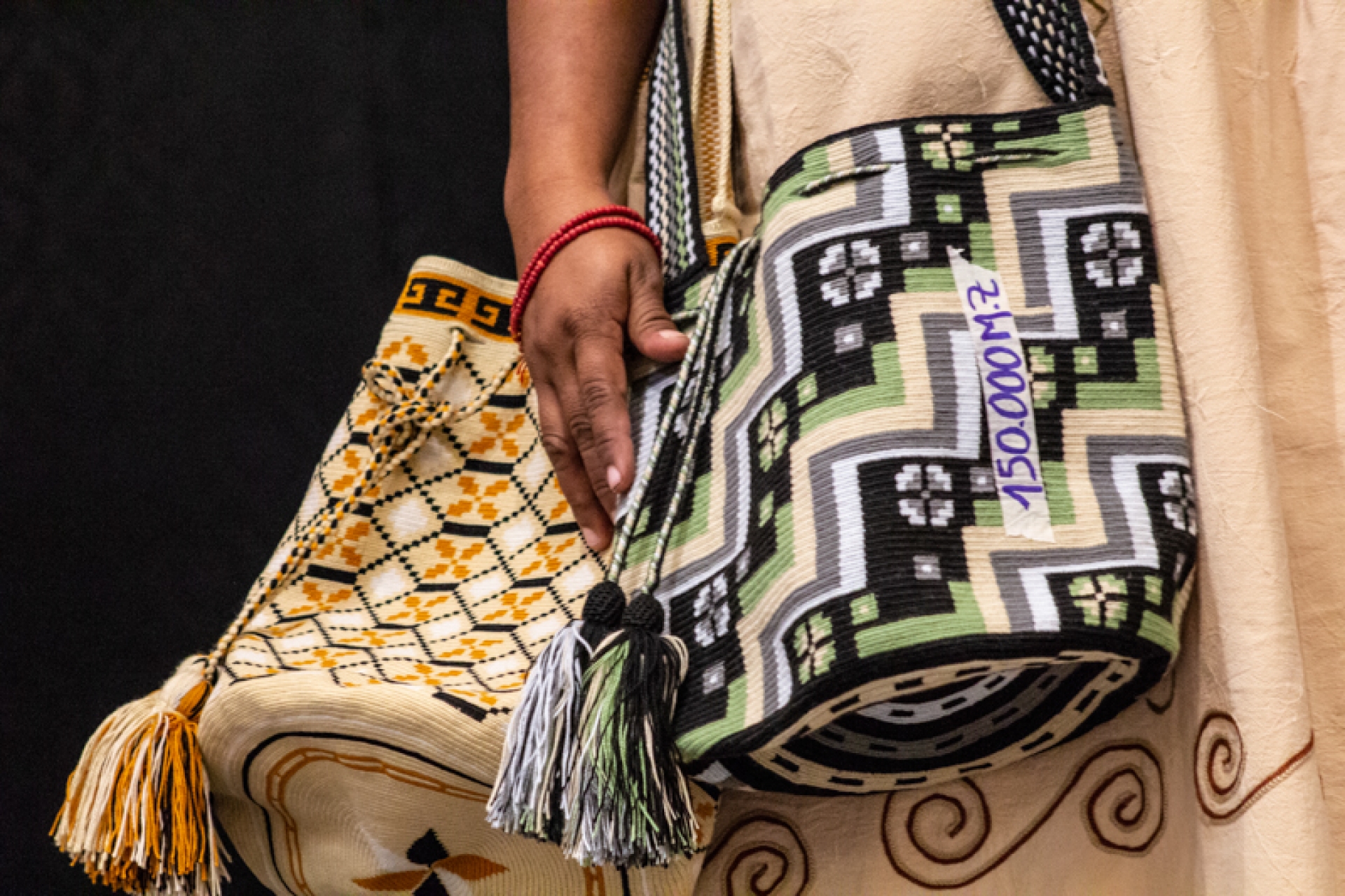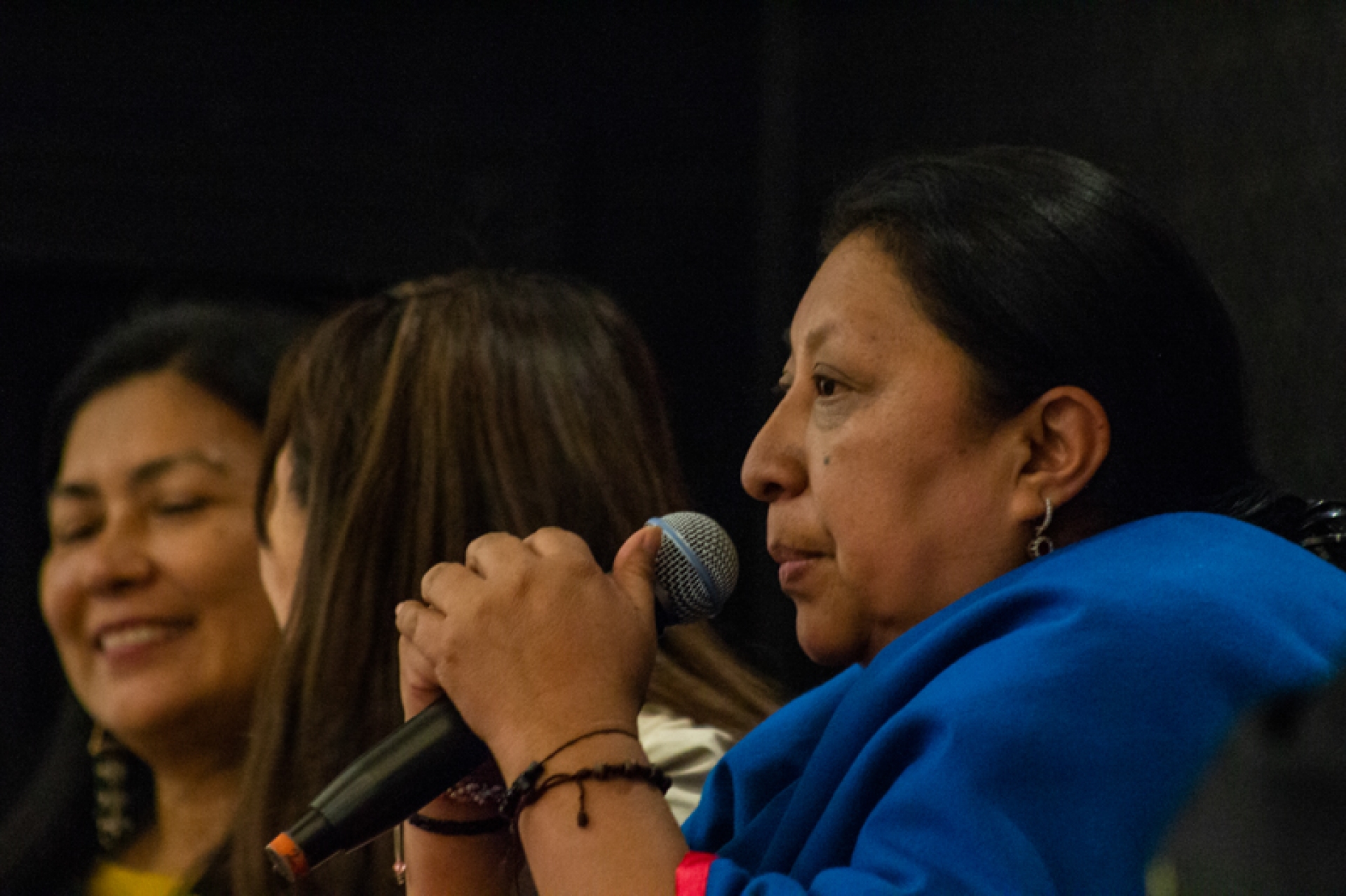 Desde La Guajira vinieron Mística Suárez y Magdalena Paz (partera y tejedora, respectivamente) para compartir sus experiencias y algo de la cosmovisión Wayuú. También estuvieron presentes Mónica Nijbe y Fany Kuiru, sabedoras y lideresas de sus comunidades indígenas que residen en el Amazonas colombiano. Ellas hablaron de la necesidad de preservar las lenguas y los saberes tradicionales para que no dejen de existir sus comunidades. Además de su conocimiento hablado, las mujeres indígenas trajeron algunos de sus productos (como mochilas) para mostrarlos y venderlos.