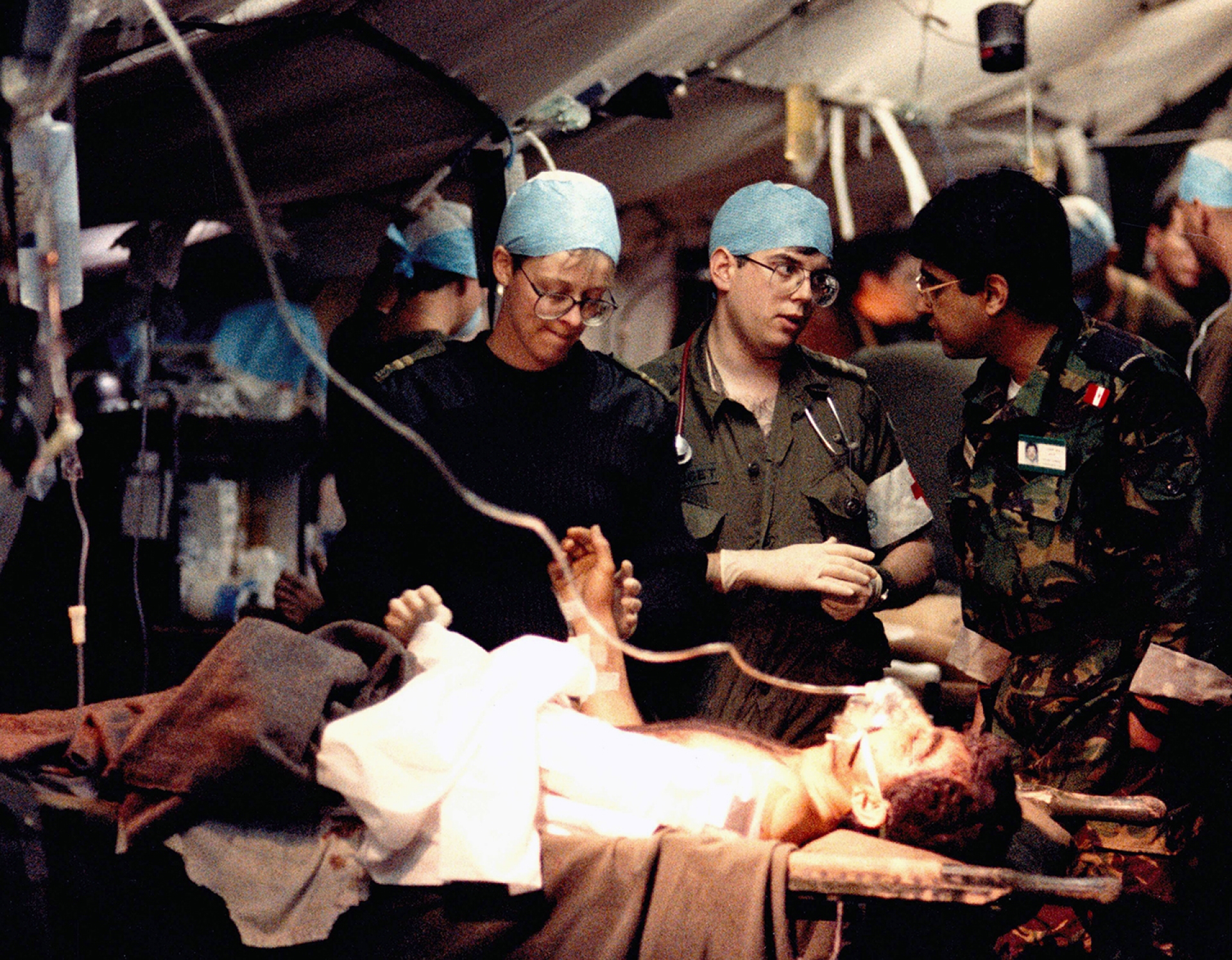 ‘’Ma première guerre a été la guerre du Golfe en 1991. Je suis parti avec un groupe de 5 photographes et d’officiers des affaires publiques, notre mission était de couvrir les forces armées canadiennes dans la guerre. C’était la première fois que le Canada partait en guerre depuis la guerre de Corée. Notre travail consistait à distribuer des photos et des vidéos pour les journaux et la télévision au Canada et de documenter les évènements et faire un documentaire en 4 parties pour la télé Canadiennes. J’avais peur parce que je ne savais pas ce qu’était une guerre, j’avais peur de l’inconnu et de ce qui pourrait arriver parce que vous ne savez jamais quand vous allez être blessé ou abattu. En Arabie saoudite, par exemple, nous avons traversé le désert avec les troupes américaines et britanniques, nous nous sommes retrouvés dans un hôpital de campagne Canadiennes qui a reçu de nombreux blessés, mutilés et tués. C’était un hôpital près de la ligne de front, seulement en une nuit, nous avons reçu74 blessés. J’ai dû mettre la caméra de côté pour pouvoir aider.’’