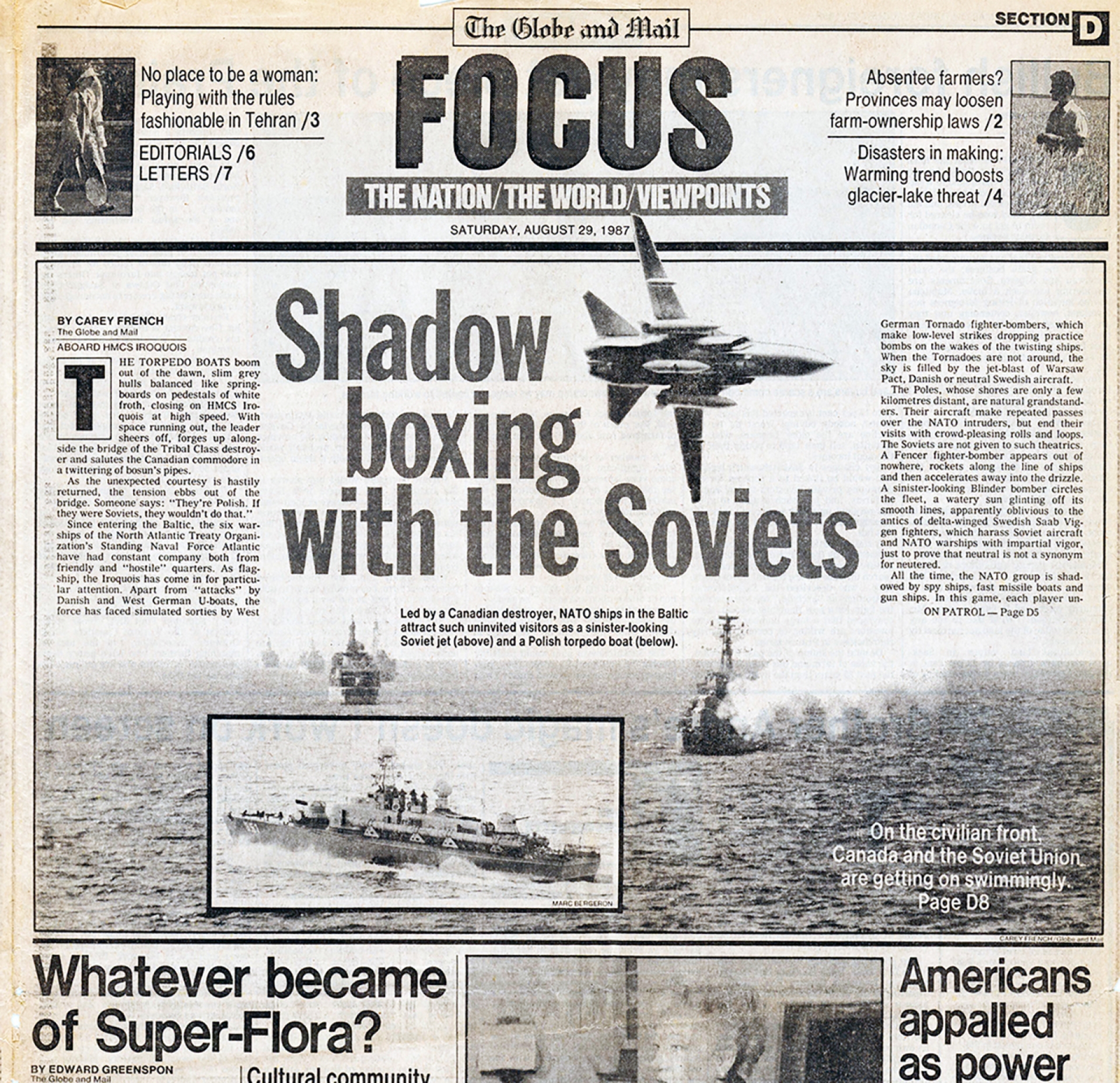 En agosto de 1987 publico mi primera portada en The Globe & Mail, en la edición del fin de semana. Las fuerzas Armadas me mandaban a cualquier lado; volábamos 20 horas a la semana en helicóptero para ir en barcos. Fue un buen comienzo para un joven fotógrafo.