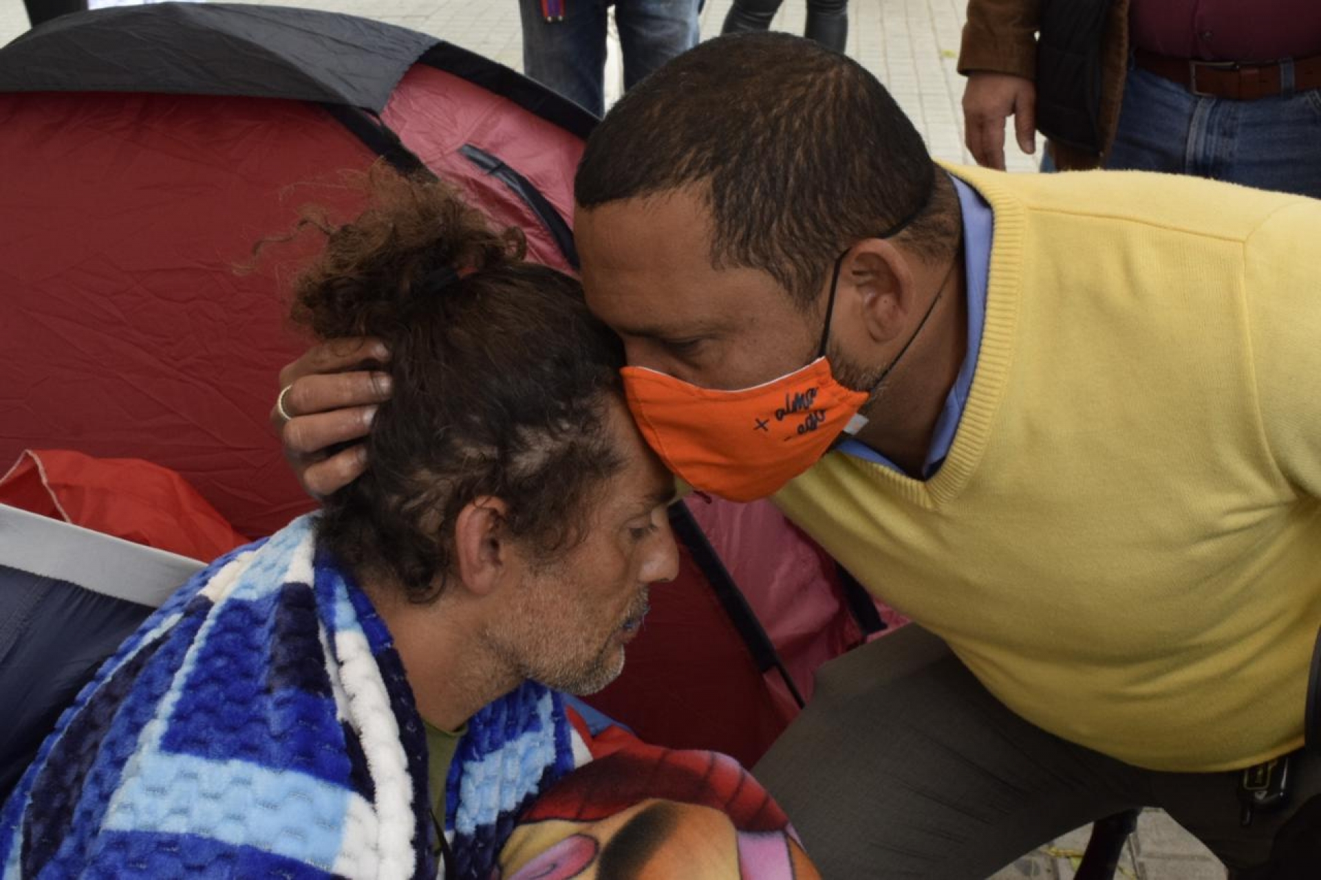 Asimismo, algunas personas se acercan para darle palabras de aliento. Al llegar al campamento, lo primero que se escucha son las voces empáticas que se acercan a decirle “eres un héroe, mucha fuerza”, como se lo dijo Juan Sanchez estudiante de Ingeniería de la Universidad Pedagógica. No obstante, desde su escasa posibilidad de comunicación dice que él no es un héroe. “Yo soy un guerrero, un colombiano más que lucha por una causa justa. Héroe es aquel papá que se levanta todos los días a trabajar para el bienestar de sus hijos o aquella mamá que deja su casa desde temprano para salir a buscar comida para su familia”.