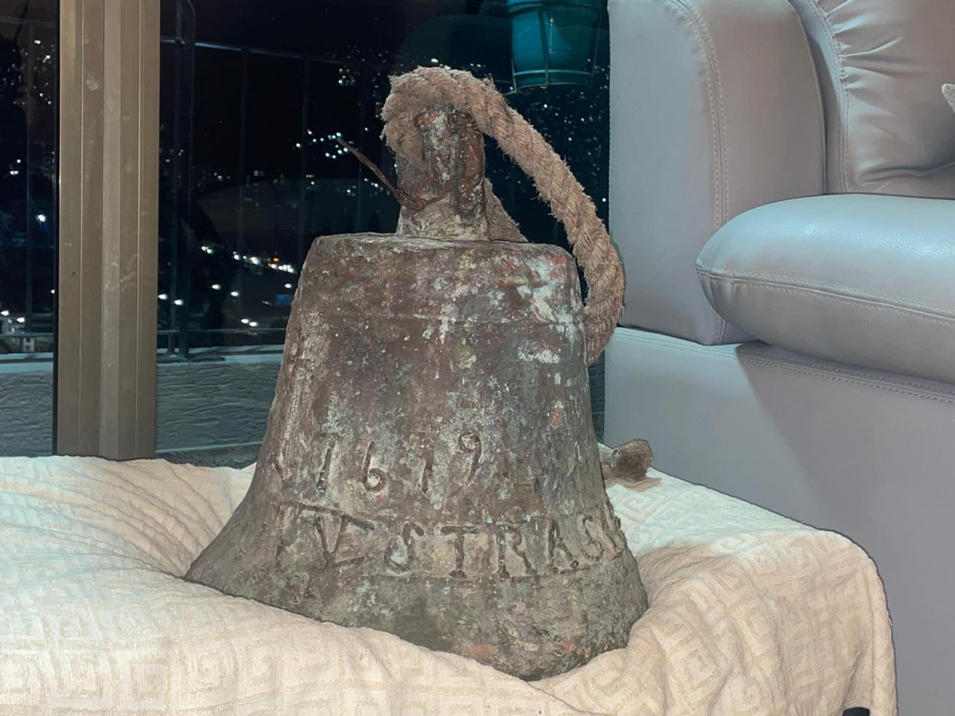 Recibí una llamada del anticuario. Como ya éramos de confianza, era el primero al que llamaban cuando encontraban algo nuevo que pudiera interesarme. Fui a la playa para ver las balas de cañón de las que me hablaron. Al fondo escuché un tintineo grave: pin, pin, pin. Veo un hombre con cincel y martillo intentando quitar la costra de coral que se le formó a una campana. Me acerqué. En la parte que no se había deteriorado se podía divisar un año: 1619. Sin dudarlo dije: “me la llevo”.
