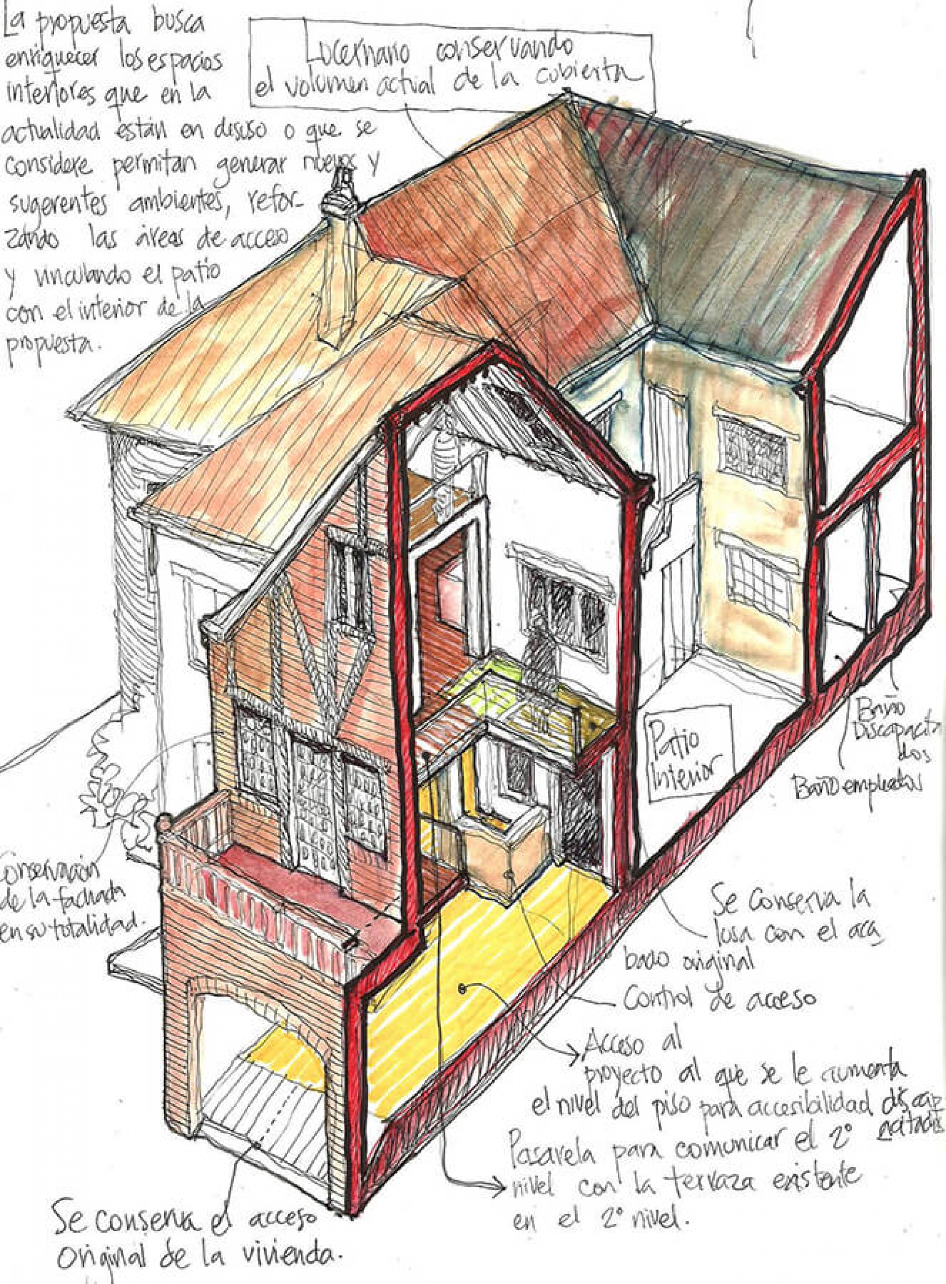 Todos sus planos los hace con AutoCAD, Revit o SketchUp, pero ninguno de ellos existe sin antes ser líneas trazadas a mano alzada y manchas de colores que se secan rápidamente en las hojas corrugadas. “El dibujo cada vez se usa menos, pero eso me parece chévere, porque me hace diferente. Me contratan porque dibujo y la gente lo aprecia muchísimo”.