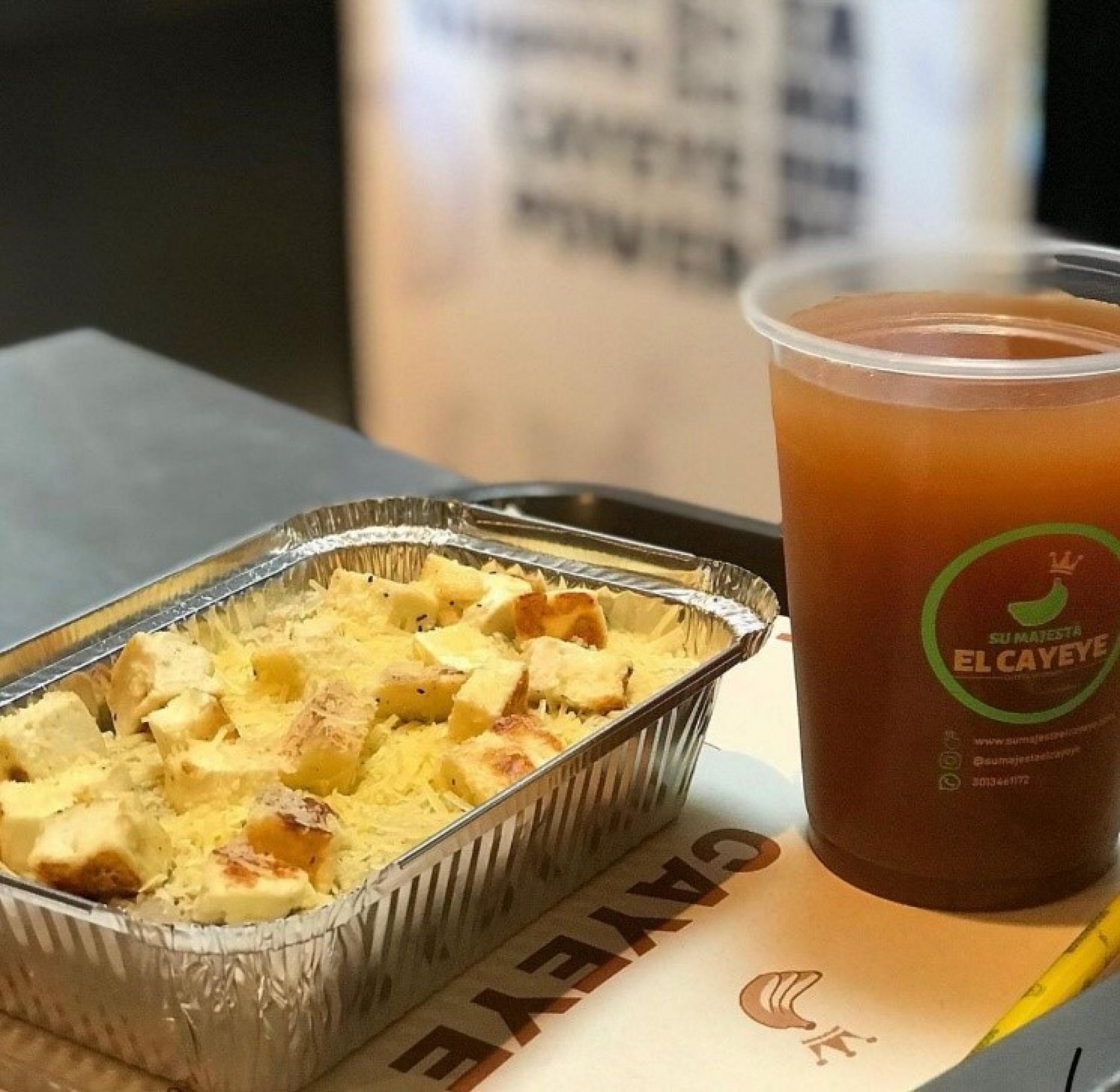 Al llegar a Bogotá hizo un logo con la forma de bananos verdes y con una corona en la parte superior de estos para que se ilustrará que se convertirían en los reyes del guineo verde, además le añadió el nombre del plato que es el Cayeye para que tuviera propiedad el eslogan.