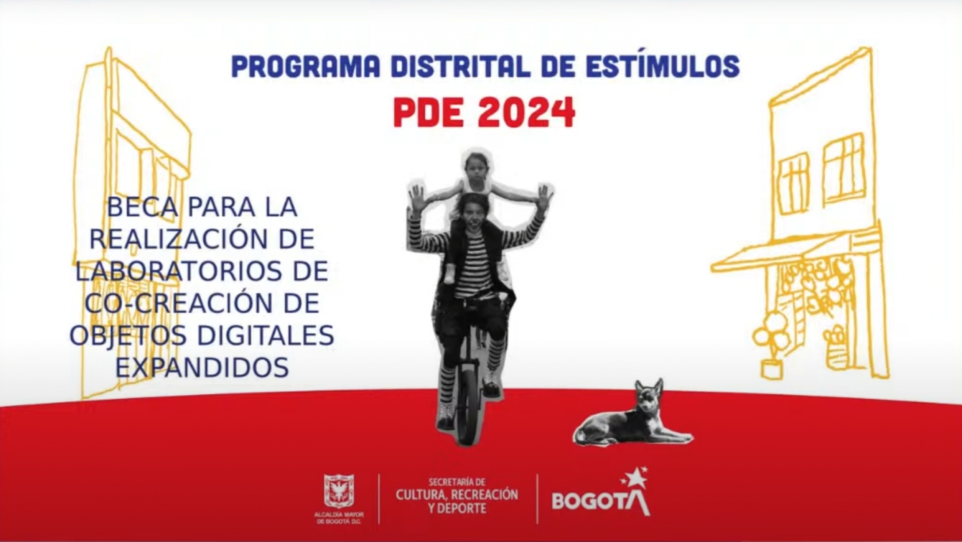 Para el año 2024, el Programa Distrital de Estímulos (PDE) ha lanzado 33 estímulos, repartidos en seis becas, a través de la Dirección de Lectura y Bibliotecas de la Secretaría Distrital de Cultura, Recreación y Deporte. Una de estas es la ‘Beca para la realización de laboratorios de co-creación de objetos digitales expandidos’; es la primera vez que el Distrito ofrece una beca en este ámbito.