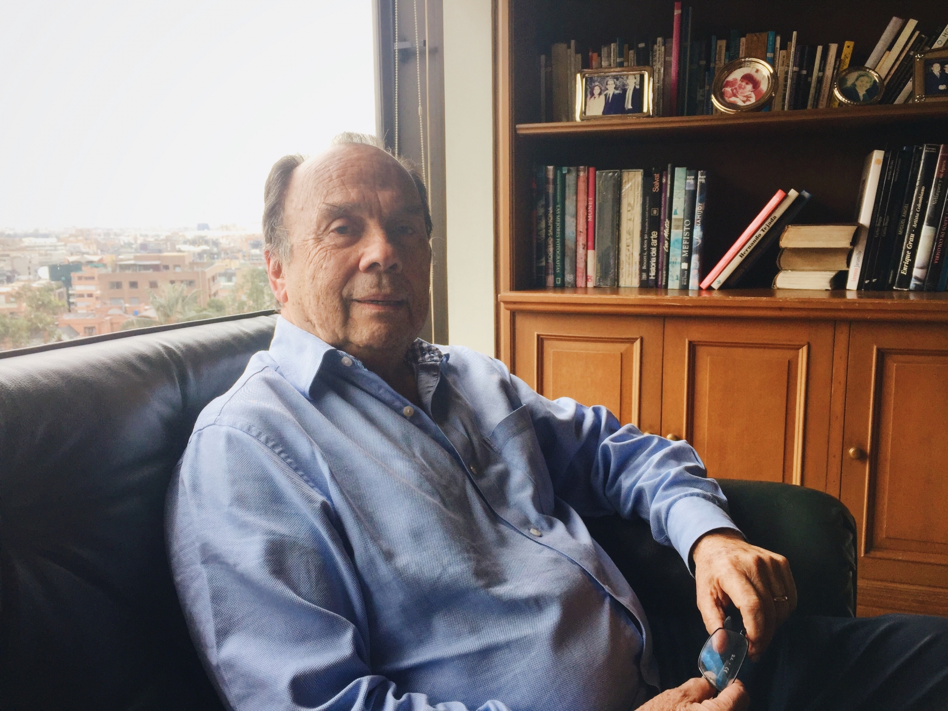 En la sala auxiliar de su casa, con repisas llenas de libros, fotos de su familia, un televisor, una silla y un sofá de cuero, Hernán Peláez cuenta la historia de cómo llegó al periodismo. “Yo empecé a estudiar ingeniería química y la termine en el año 67. Tuve la fortuna de haber hecho una pasantía en Shell Colombia, una compañía petrolera. Cuando terminé me acerqué a la compañía a ver qué posibilidades había y de los tres que hicimos la pasantía allá, me dijeron ‘si venga usted’”, cuenta mientras mueve sus manos para explicarse mejor.