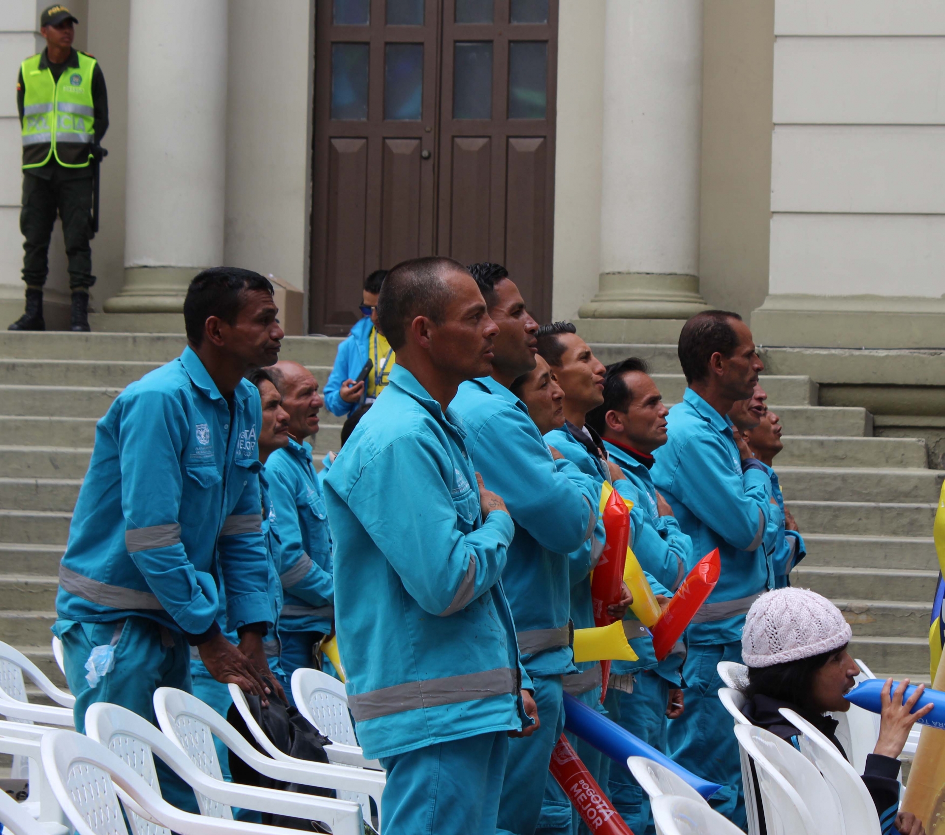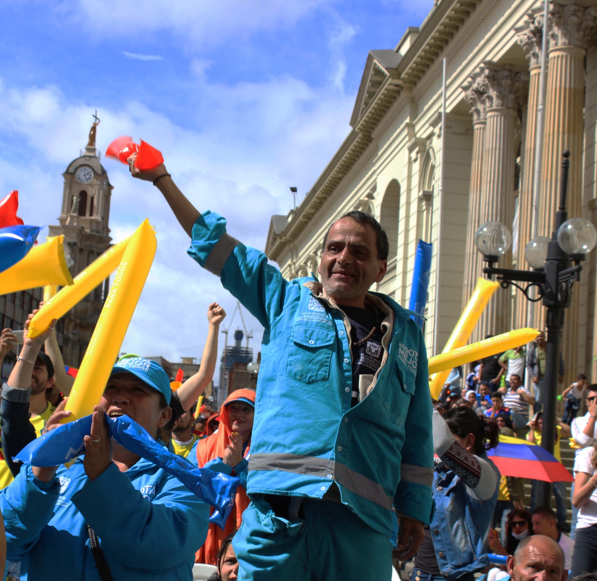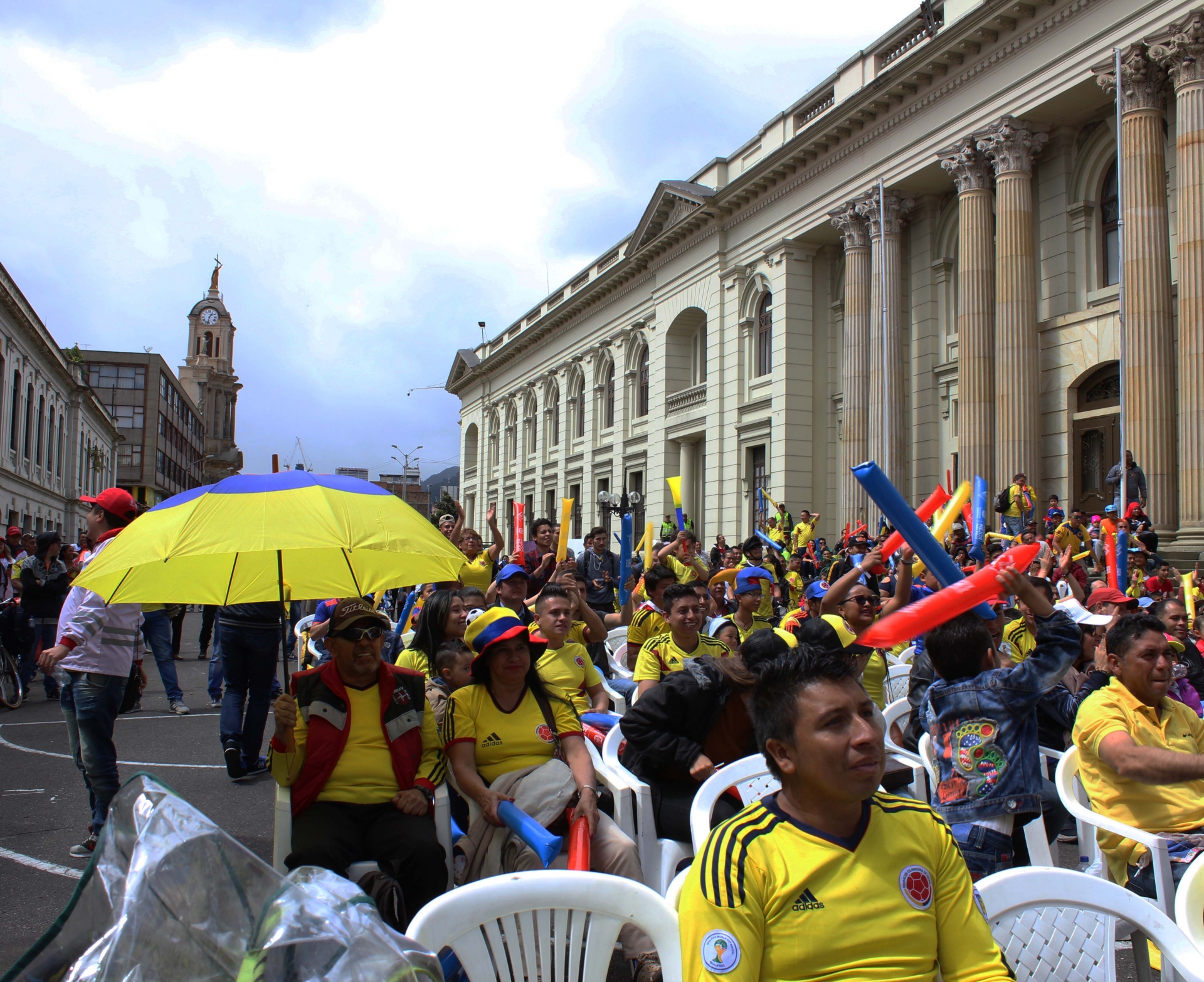 La pelota rodó en Kazán y el centro de Bogotá se empezó a llenar cada vez más. Llegaron algunos habitantes de calle, trabajadores del sector y simples curiosos con toda su familia, inclusive bebés, que querían ver el partido.
