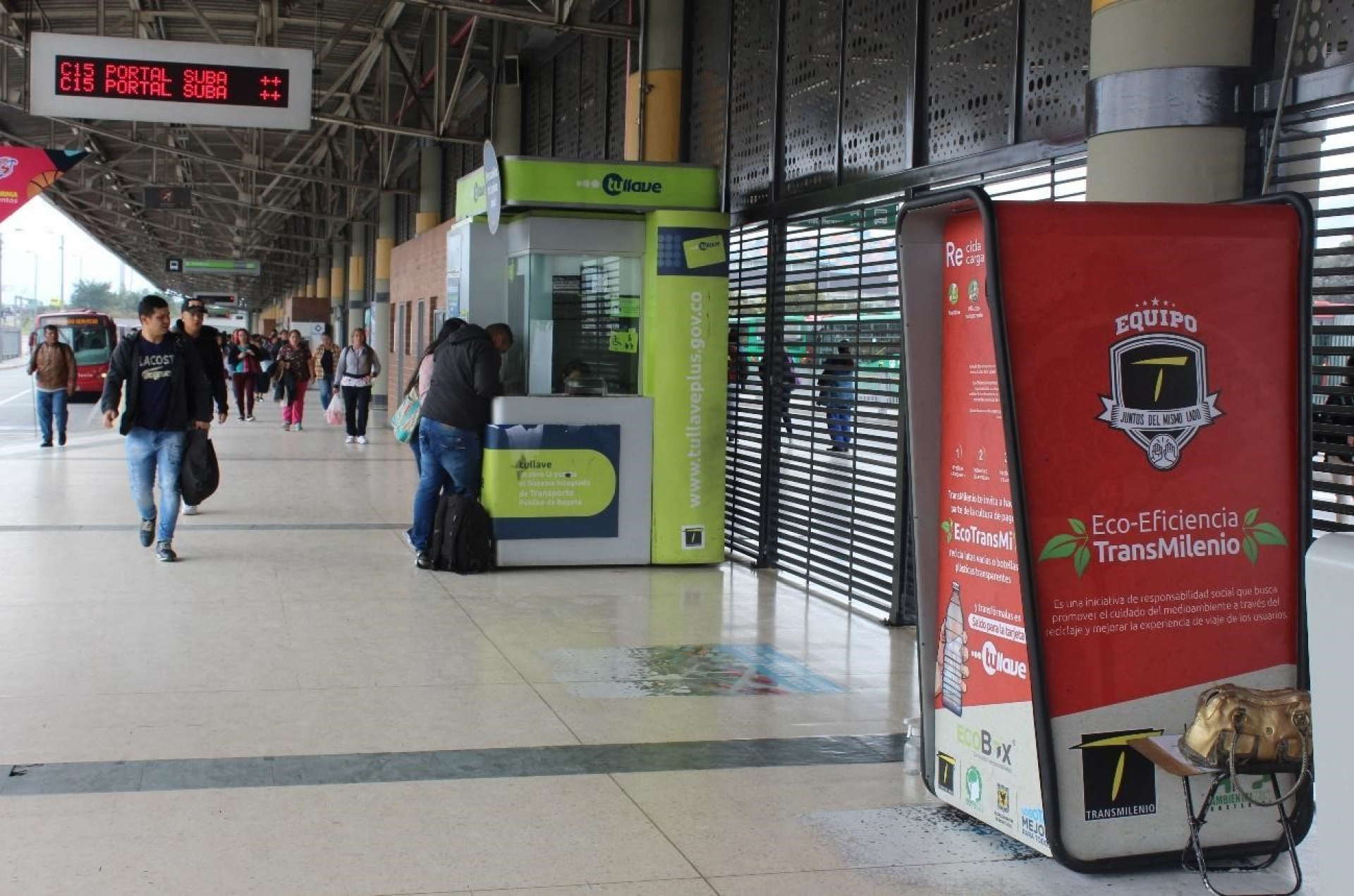“Vimos esta máquina como la semana pasada y queríamos usarla porque nos parece chévere hacer algo para reciclar, aunque sea poco lo que den”, dice Johanna Báez, mientras hace la fila para cargar los 2.200 que le hacen falta para el pasaje. Desde el mes de febrero el sistema de transporte Transmilenio implementó los cubículos de reciclaje, en el Portal del Sur, Tunal, Usme, Américas y en la estación Paraíso (Transmicable), como un plan piloto.