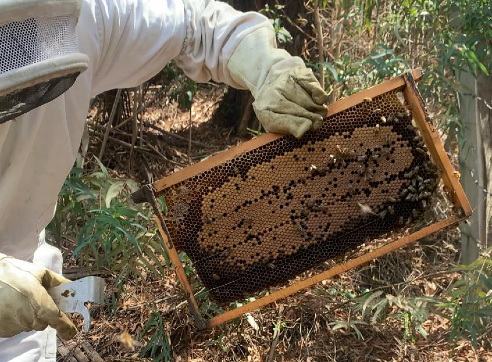 Las abejas llevaban más de 12 horas en el balde luego de su recuperación. En cualquier caso, es mejor que vivieran unas horas tormentosas sin poder trabajar, alimentándose de la miel que Jairo les daba a vivir el destino de ser quemadas por las personas en hogueras con petróleo o ACPM. El miedo de la gente a ser atacada acaba con miles de abejas. “En esta colonia que trajimos hay aproximadamente 10 mil abejas. En una colmena grande y bien poblada puede haber entre 60 y 70 mil abejas”, expresa Jairo mientras se coloca su traje especial para entrar al apiario. Según la Organización Mundial de la Salud (ONU) un tercio de la producción mundial de alimentos depende de las abejas y en Colombia en los últimos ocho años se ha perdido alrededor del 40 % de los enjambres. También, se ha registrado que el 90 % de la población mundial de este insecto ha desaparecido por el uso indiscriminado de pesticidas.
